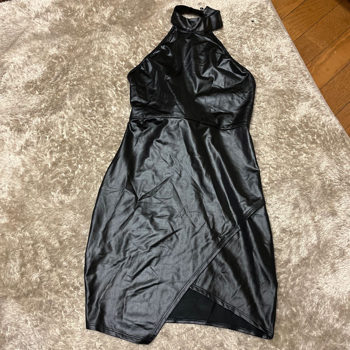 超お値打ち出品 小さめサイズ Lady's ボディーコンシャスなフェイクレザーホルターネックワンピース XSサイズ 新品タグ付未使用品になります。