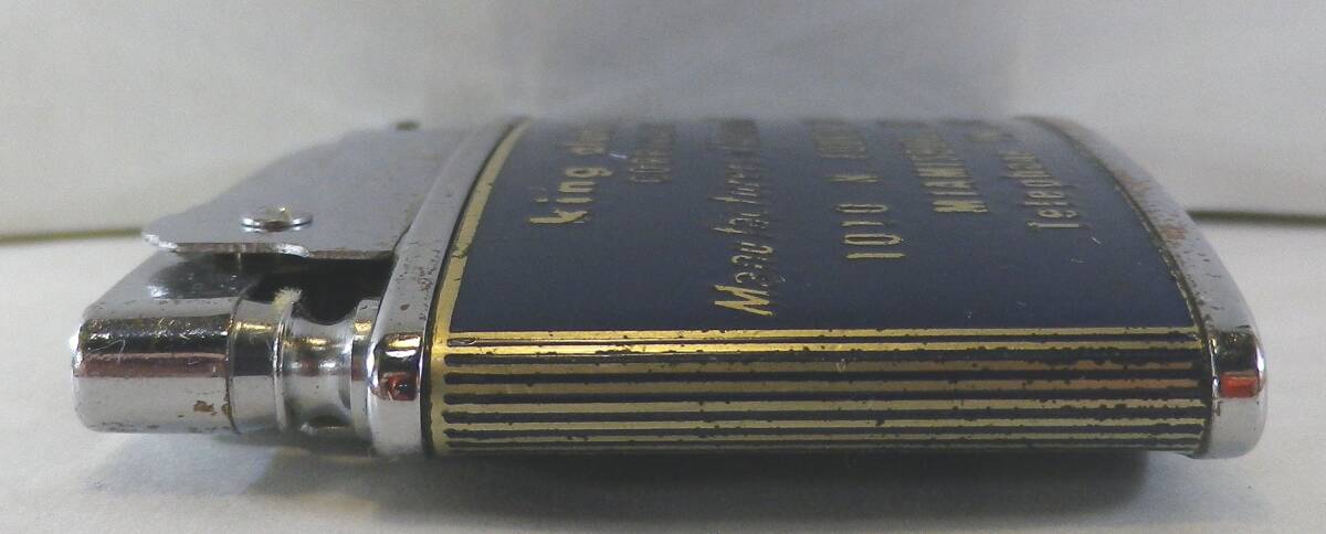 国産メーカー「IDEAL 」のFLATタイプの『ADLITER』ライターです。両面に『KING ALUMINUM CORP.』の彫り込みペイントがあります(ペイントは表面90%、裏面90%、両面共に状態は良好)。同社のノベルティです。新品のウイック(芯)に交換済みです。到着後直ぐにご使用できます。フリント、オイルは用意してくださいね。ノークレーム、ノーリターンでお願いします。貴方のコレクションにどうぞ!落札価格に送料がかかります。 本商品はコレクションに最適な逸品です!! 当方、その他にもDVDやZIPPOを出品しておりますので宜しくお願いします。 |