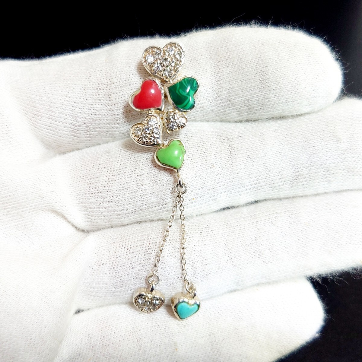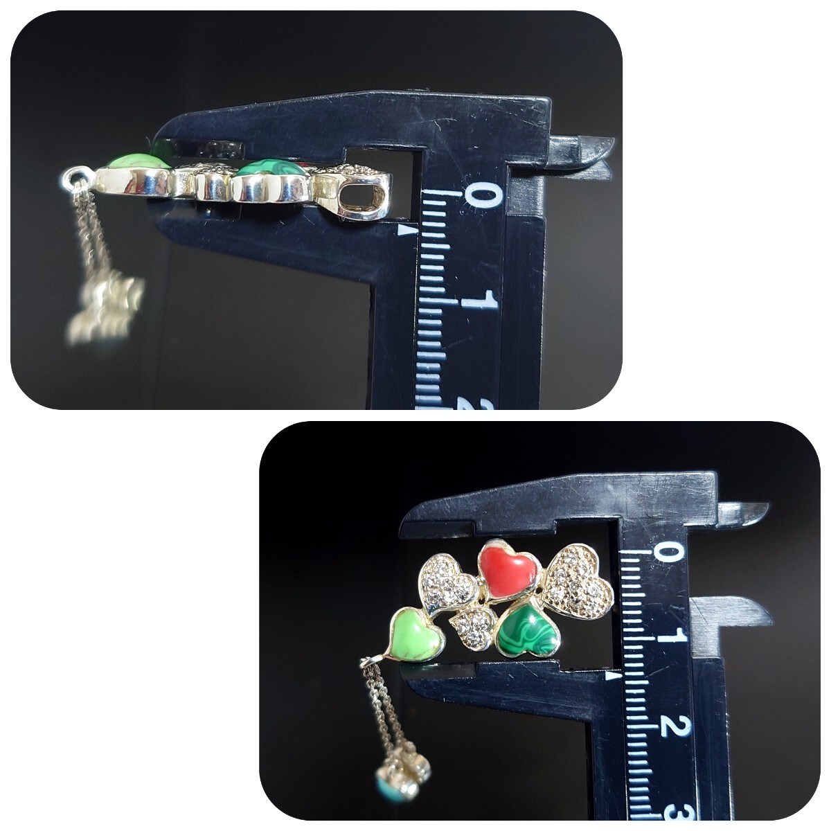 グリーンターコイズ、コーラル、グリーンマラカイトとハートのジルコニアがアクセントになっています。