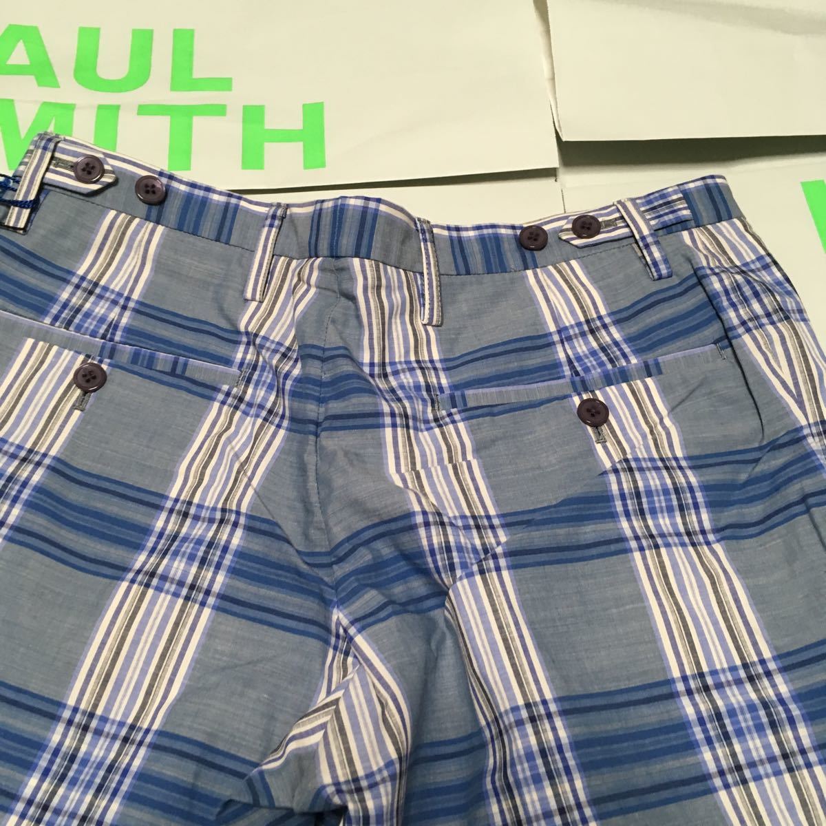 着回し抜群アイテムのショートパンツです ポールスミスらしくシルエットが素敵です。 人気商品ですので是非お早めにご検討ください ●状態●新品 ウエスト平置き39cm 股下27cm 裾幅22cm ※素人採寸のため誤差はご了承ください |