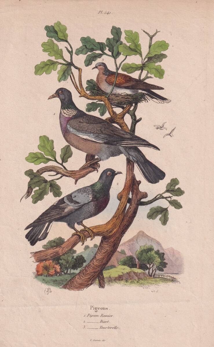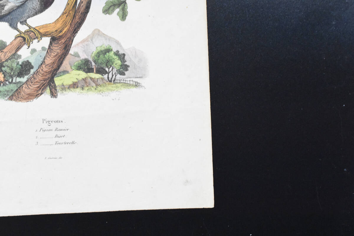 フランスアンティーク 植物画・ 博物画 『鳥類 Pigeons4 鳩 』 多色刷り銅版画