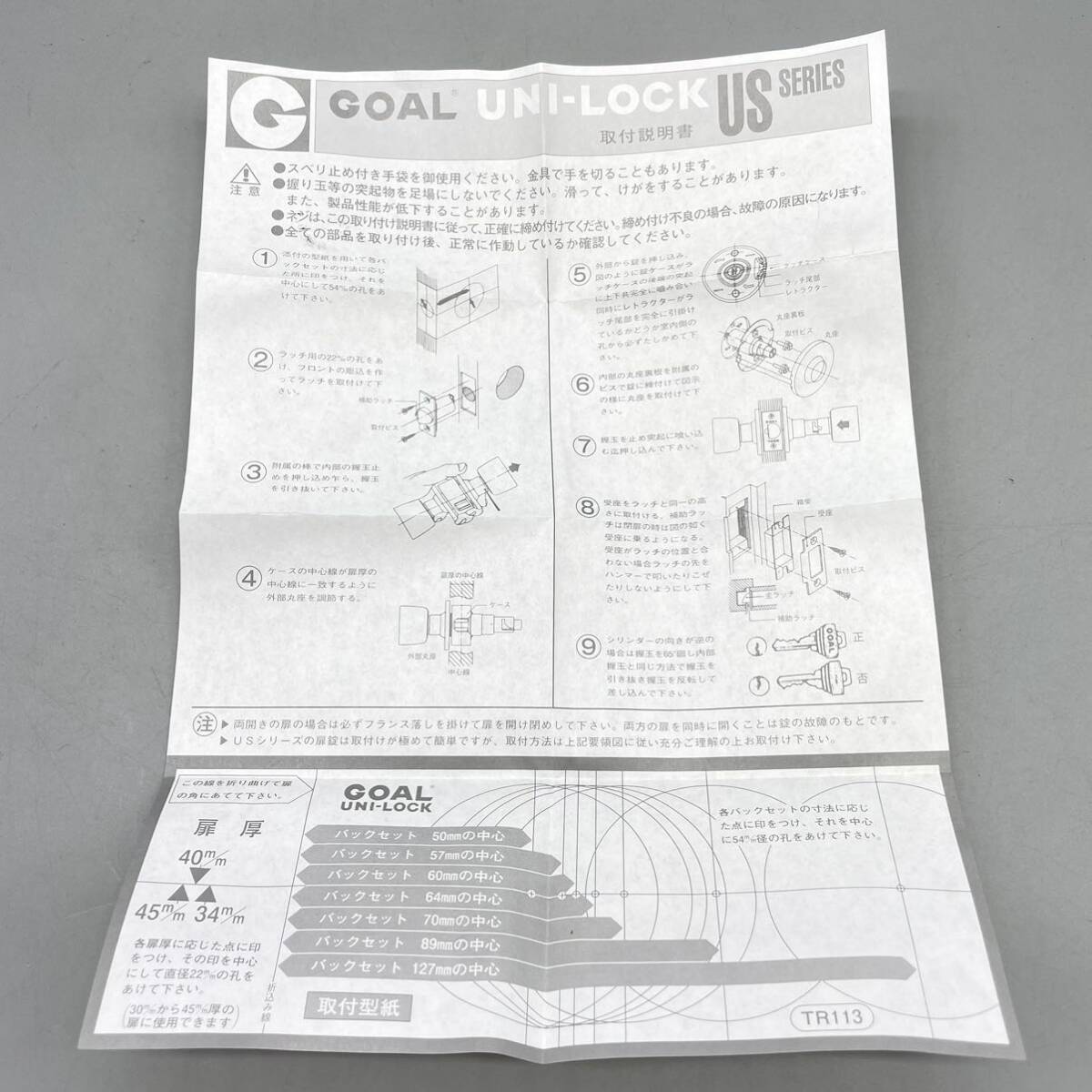 【新品 未使用品】 GOAL ドアロック ユニロック US-1E 30-45mm ステンレス 扉 ドアノブ 取付 交換 修理 パーツ 作業 工具 説明書 箱付き
