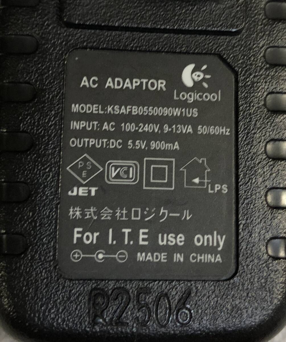 ロジクール Logicool 純正 ACアダプター KSAFB0550090W1US 5.5V 900mA センターマイナス