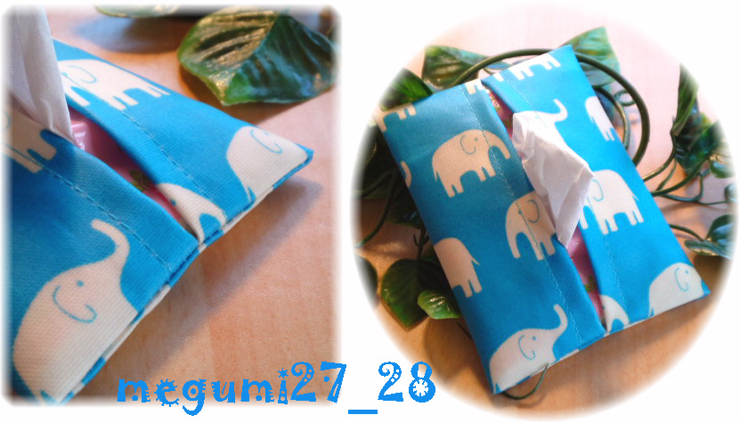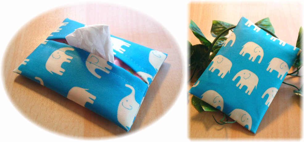 <ポケットティッシュケース>ゾウさん水色★象★ハンドメイド★ラミネート加工
