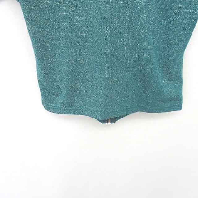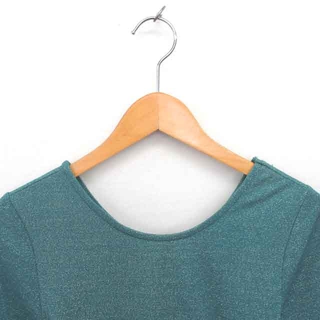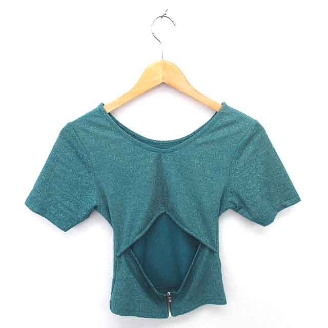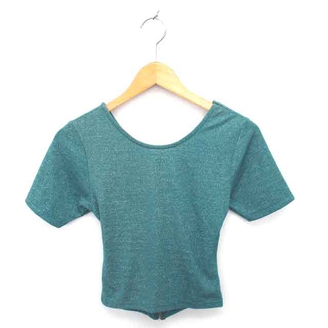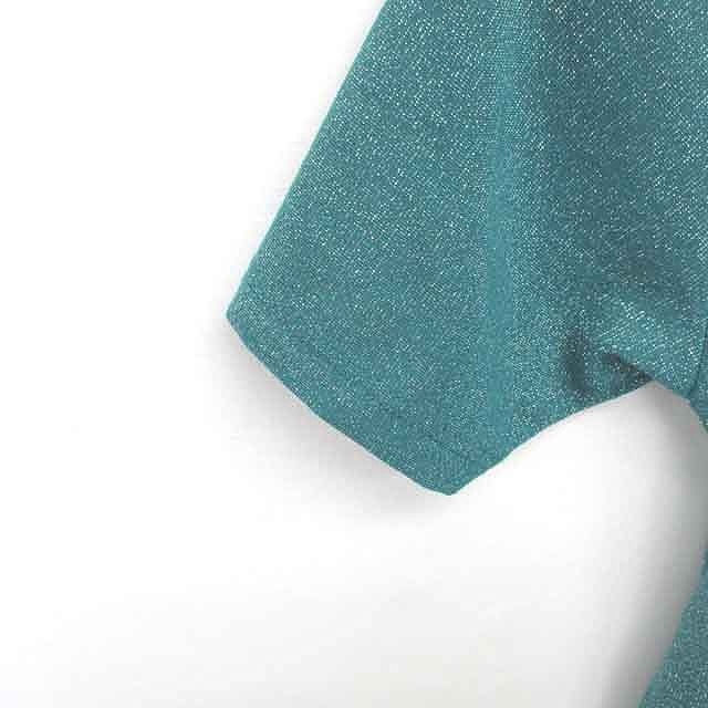エヴリス EVRIS カットソー ニット ラメ 背あき 丸首 薄手 半袖 F グリーン 緑 /TT17 レディース