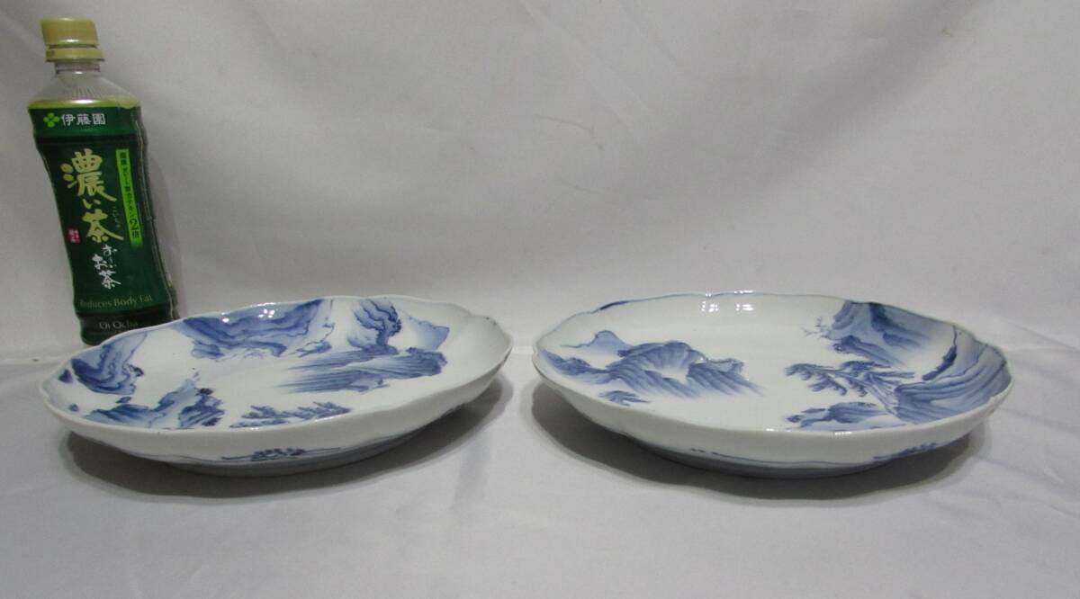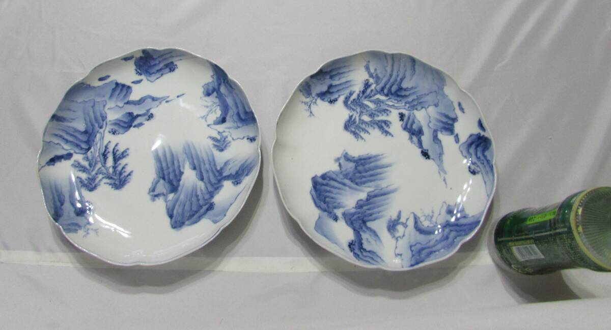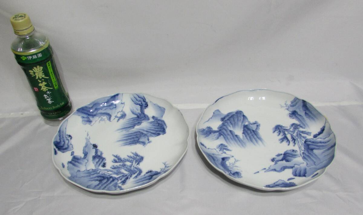 [No1685] 青焼陶磁大盤絵皿 2枚セット 中古品