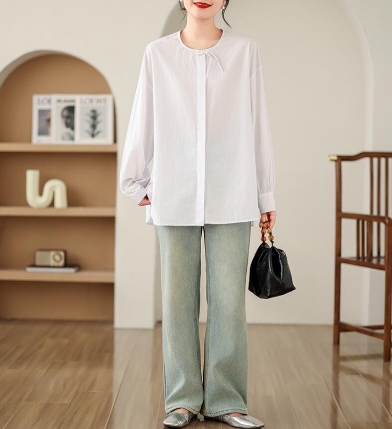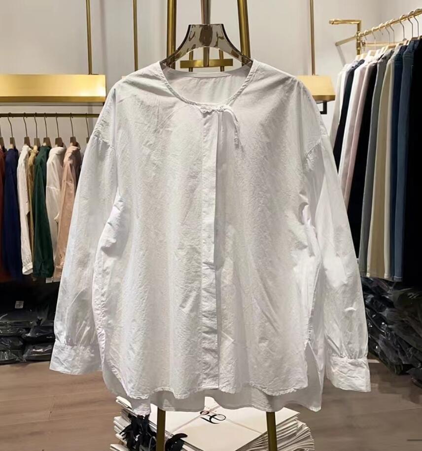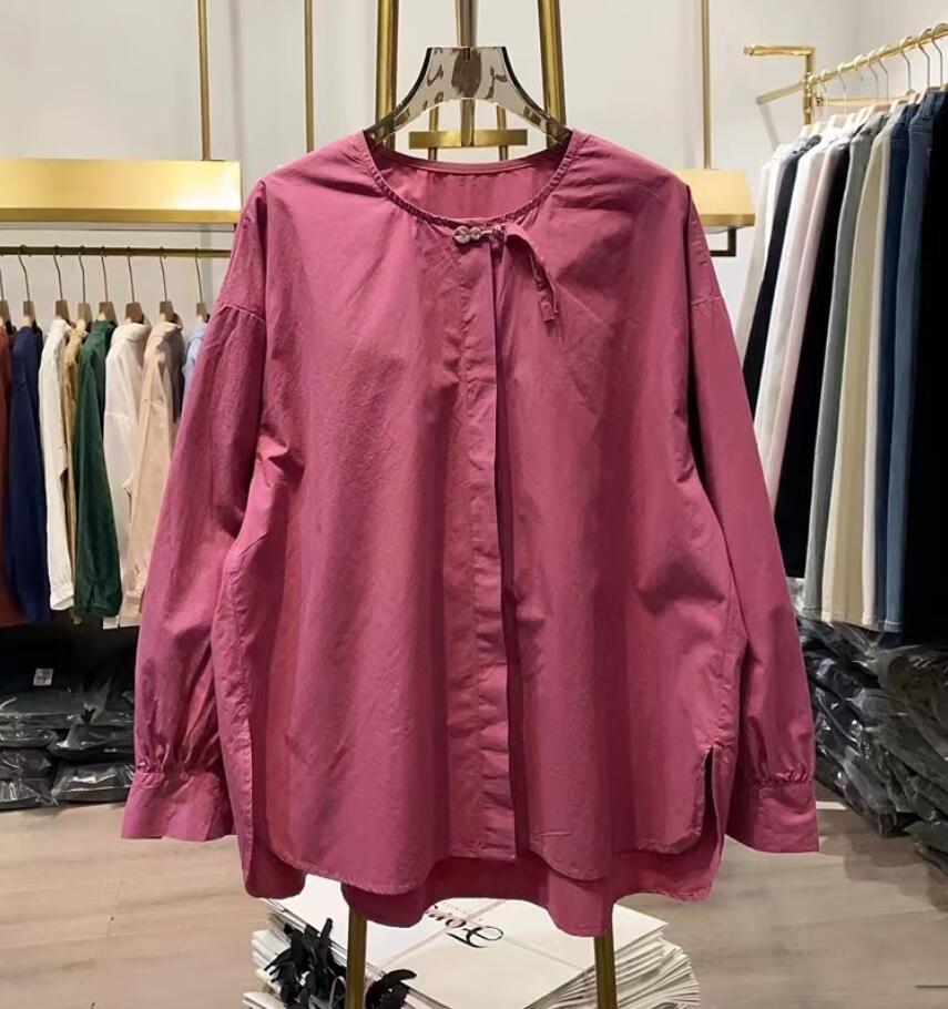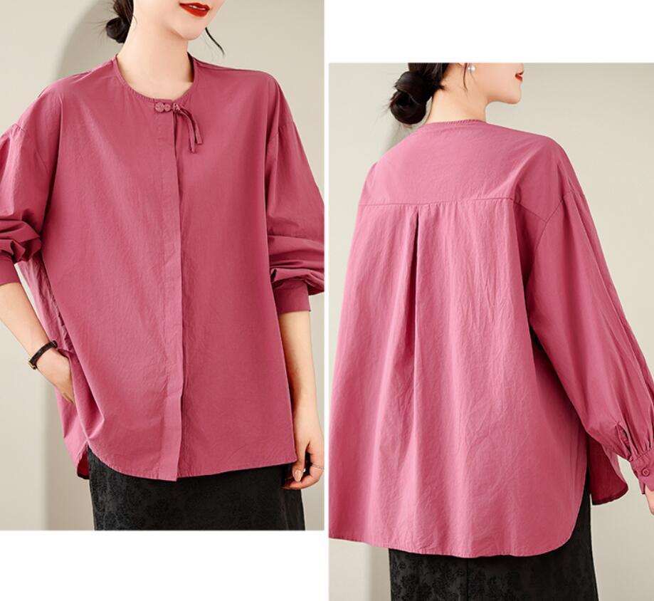 新入荷~カジュアル 可愛い 綿麻混 トップス ナチュラル ゆったり コットン チュニック 長袖 素敵な 大きいサイズ シャツ~ バラ色~M
