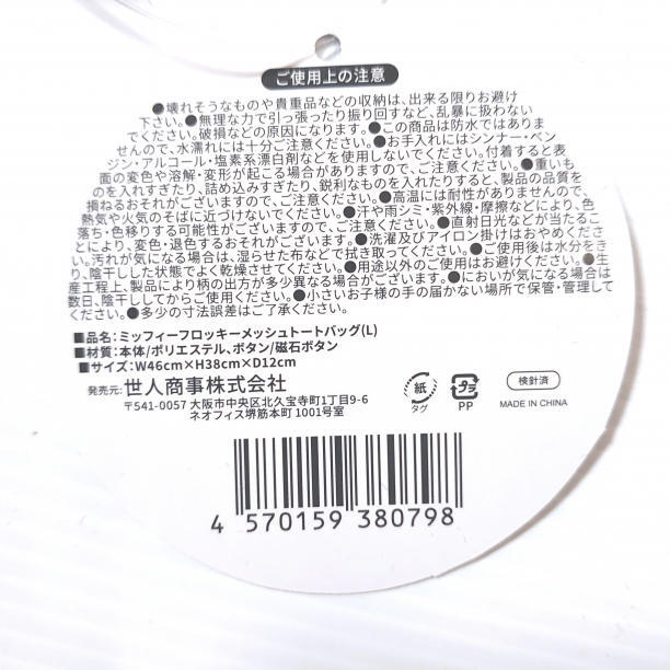 【新品未使用】ミッフィー フロッキーメッシュトートバッグ ホワイト系 メッシュ miffy 軽量 大容量 となります。(タグ付き)