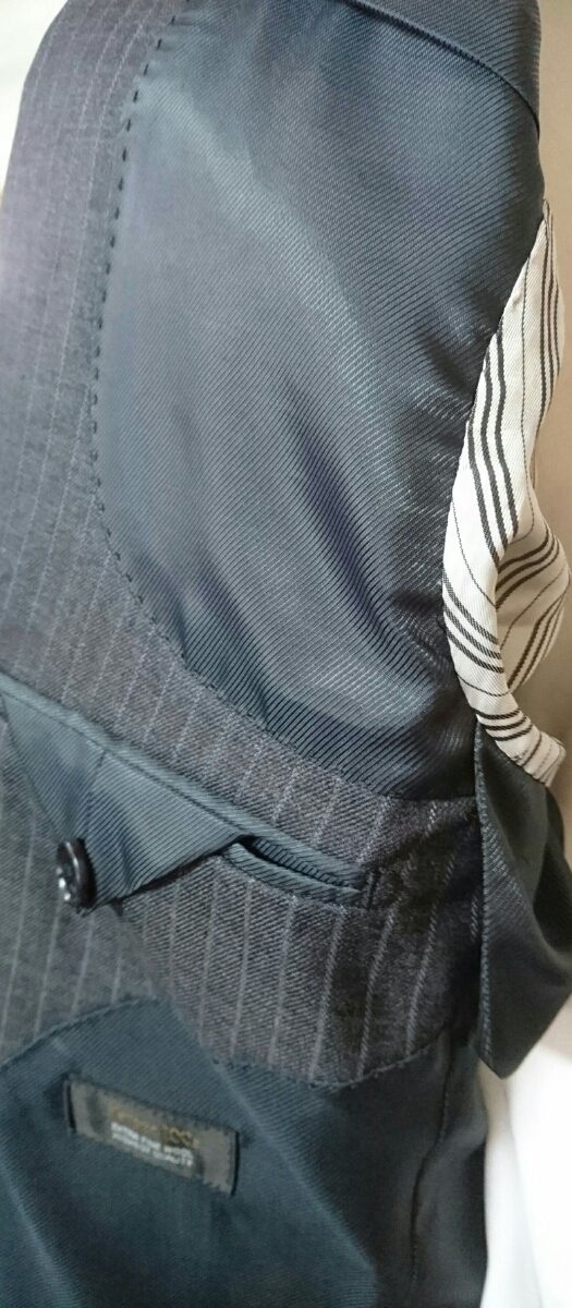 サイズ⇒Y7(胸囲96、胴囲80、身長180) ジャケット⇒着丈76cm、肩幅45cm、身幅50.5cm、袖丈63.5cm パンツ⇒ウエスト80cm、ワタリ幅32cm、裾幅19.8cm、股下96cm ※測り方によって誤差は生じます。 色・柄⇒グレー、ストライプ(パープル) 表地⇒毛98%、ポリエステル2% Super100's 裏地(総裏)⇒ポリエステル 袖裏⇒キュプラ ベント⇒サイドベンツ ステッチ⇒入り 袖ボタン⇒4個、キッスボタン パンツ⇒ノータック 商品状態⇒新品 着用季節⇒秋冬 R11-410-102363 |
