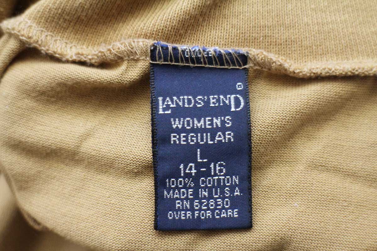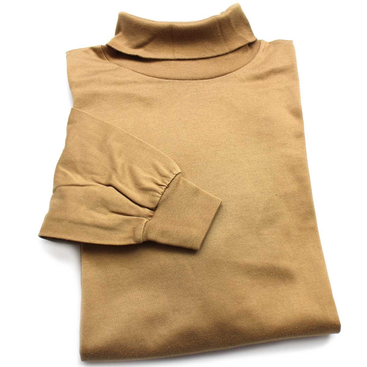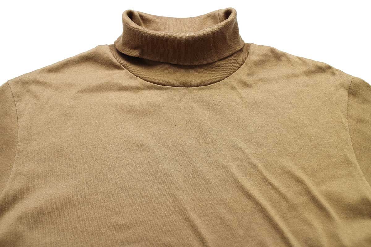★90s USA製 LANDS'ENDランズエンド 無地 タートルネック コットン 長袖Tシャツ ライトブラウン W-L★オールド カットソー インナー