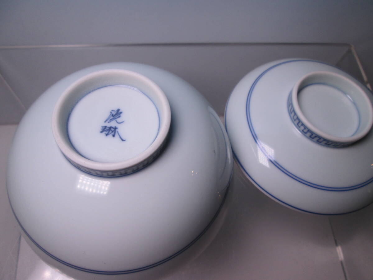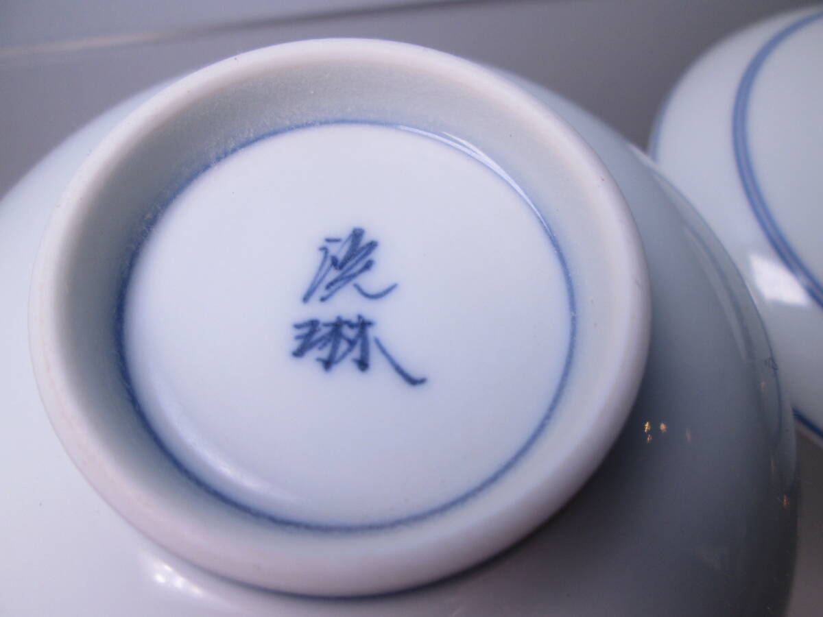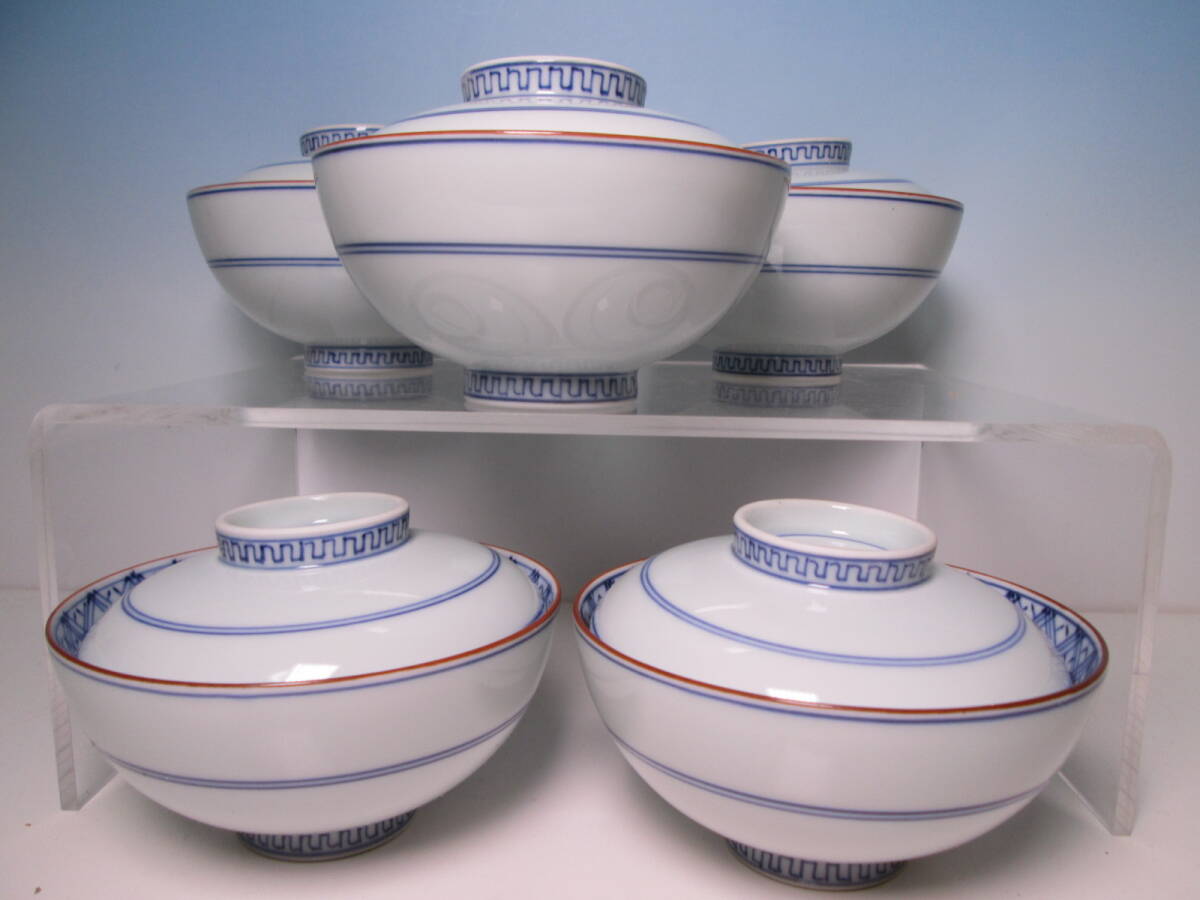 ☆お料理屋さんの器 京焼 在銘 染付 蓋茶碗 五客 蓋向付/飯茶碗/懐石/割烹料理