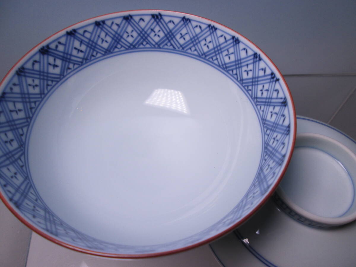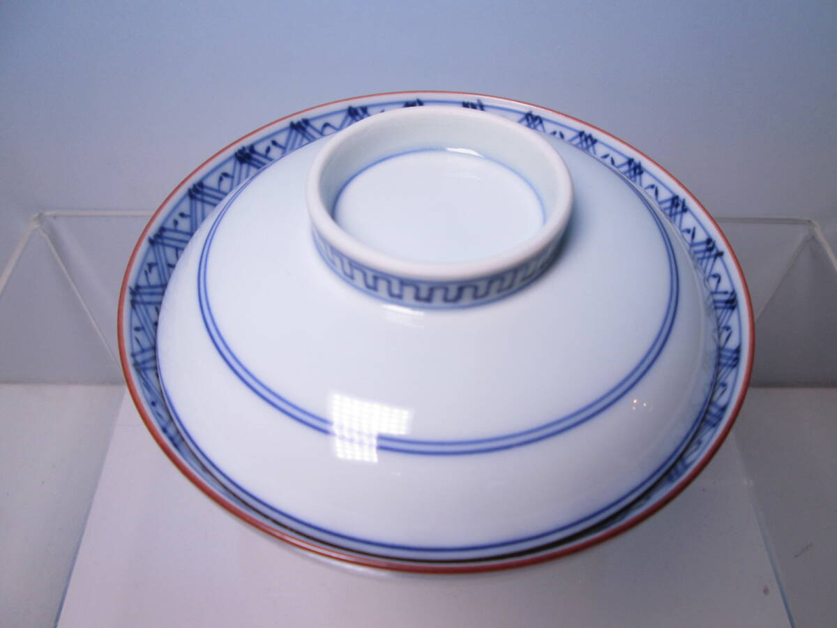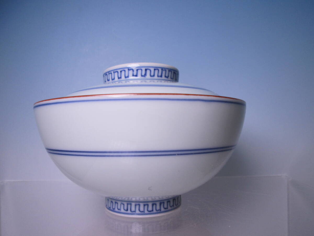 ☆お料理屋さんの器 京焼 在銘 染付 蓋茶碗 五客 蓋向付/飯茶碗/懐石/割烹料理