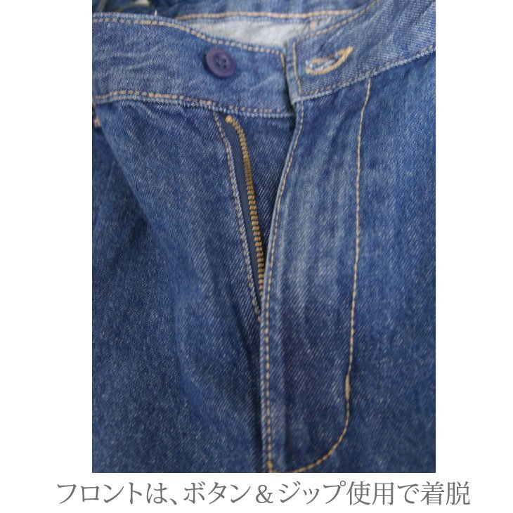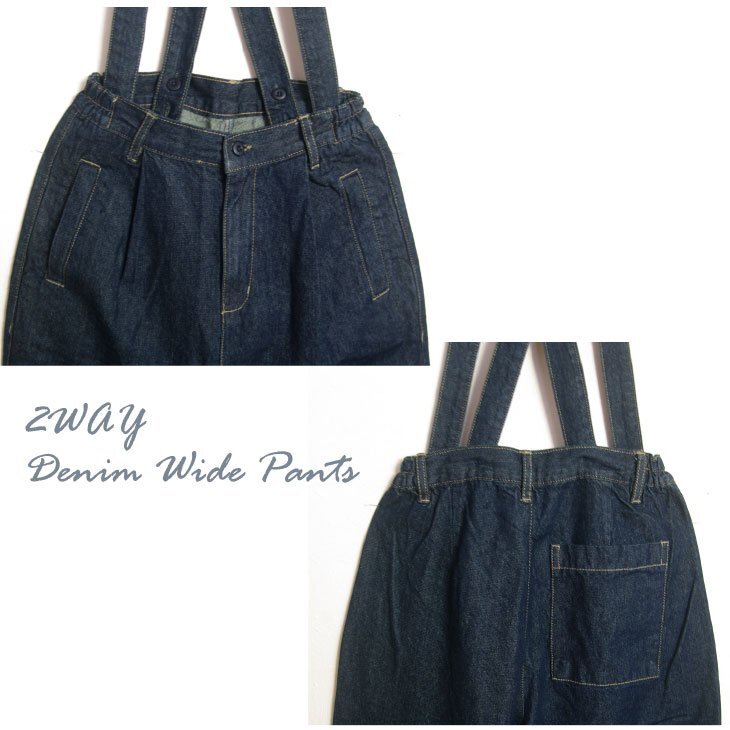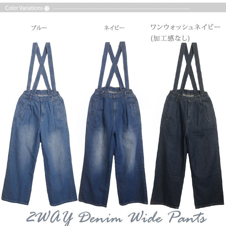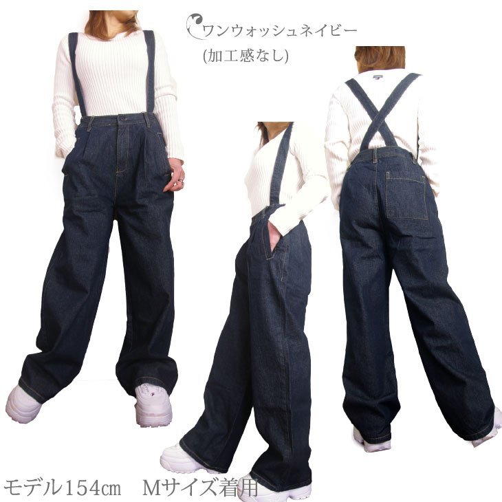 L ワイドパンツ デニム レディース サスペンダー ゆるシルエット ボトム ワンウォッシュネイビー 新品