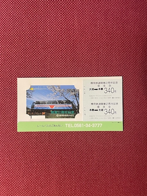 樽見鉄道開業2周年記念乗車券 未使用テレカ50度数 (管理番号12-11)
