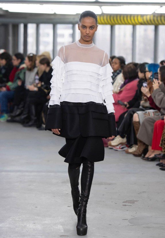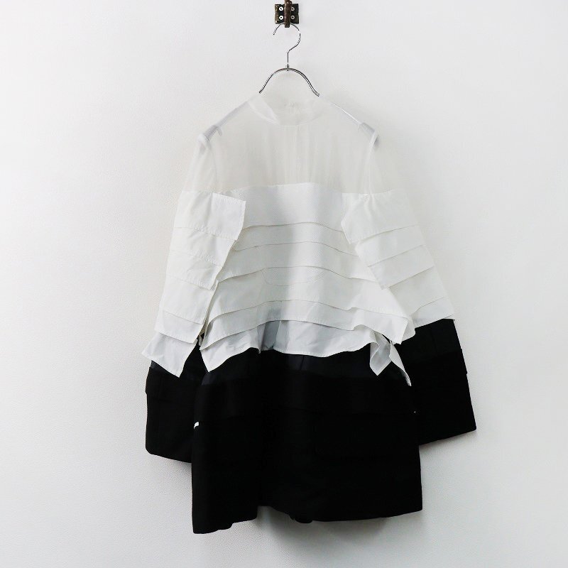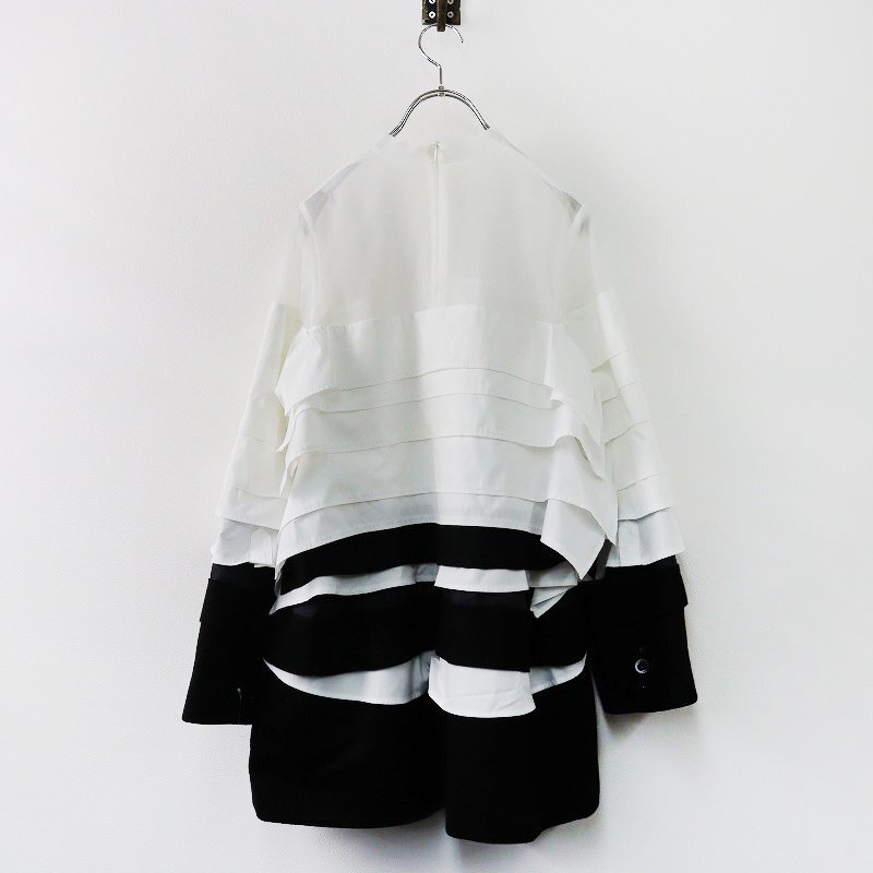 美品 定価15.4万 2023AW サカイ sacai 23-06915 素材切替ドッキングティアードドレス 1/ホワイト ブラック フレア【2400013783965】