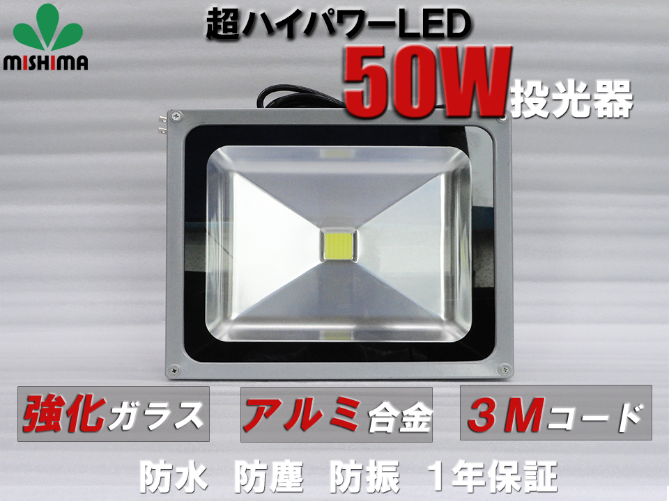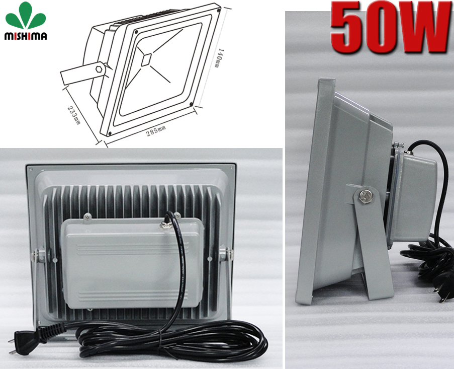 ●SMDチップ搭載のLED投光器50Wは従来の500Wに相当する明るさを提供します。