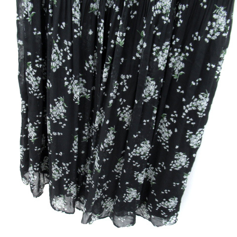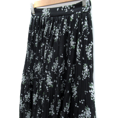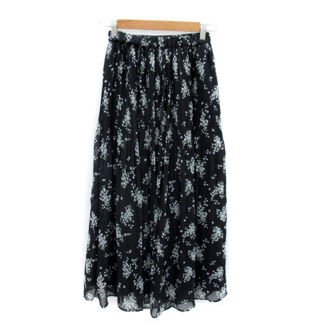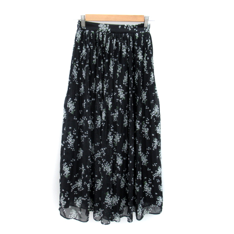 アズールバイマウジー AZUL by moussy フレアスカート ロング丈 マキシ丈 花柄 プリーツ S 黒 ブラック /SY11 レディース