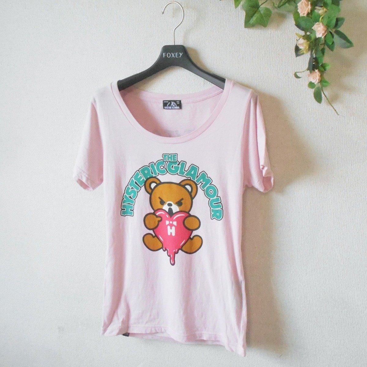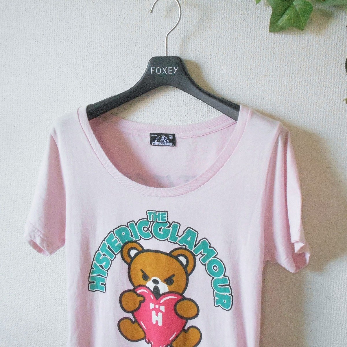 【ポイント】ヒステリックグラマーのレディース用Tシャツになります。お色はピンク色ベースで、前はクマさんやロゴ、背中は文字プリントが入った、とっても可愛いデザインです。