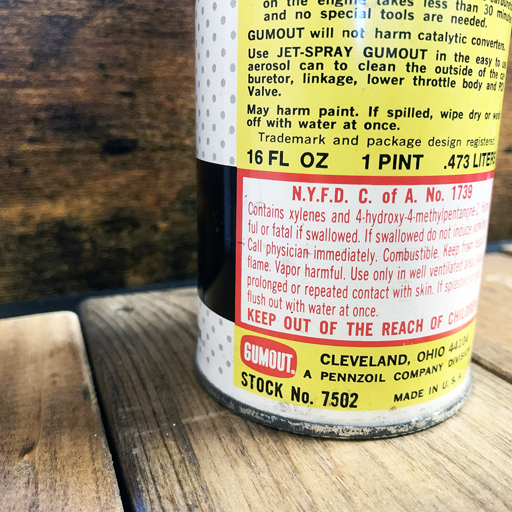★VINTAGE★GUMOUT キャブレタークリーナーの空き缶★USA ビンテージ アメ車 V8 マッスル ローライダー USDM
