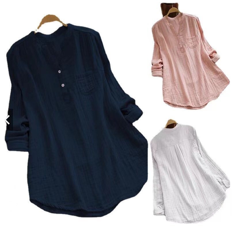 LRM509★新品M~4XLサイズ春夏カジュアルゆったり大人気無地綿麻20304050代大きいサイズおしゃれ普段着長袖ブラウスシャツ
