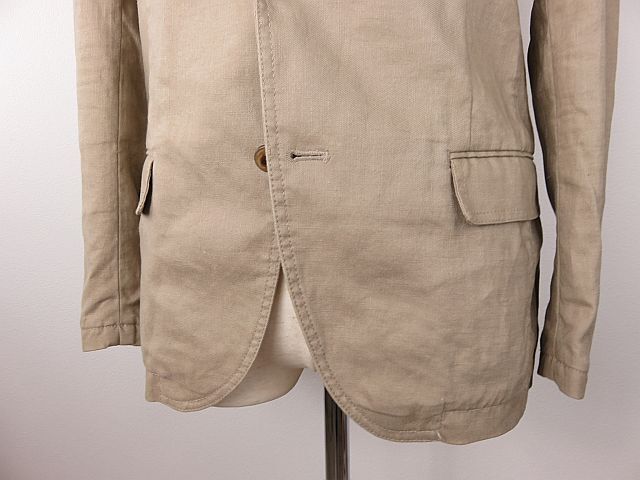 テーラードジャケット/背抜き、リネン100%、フラップポケット、センターベンツ