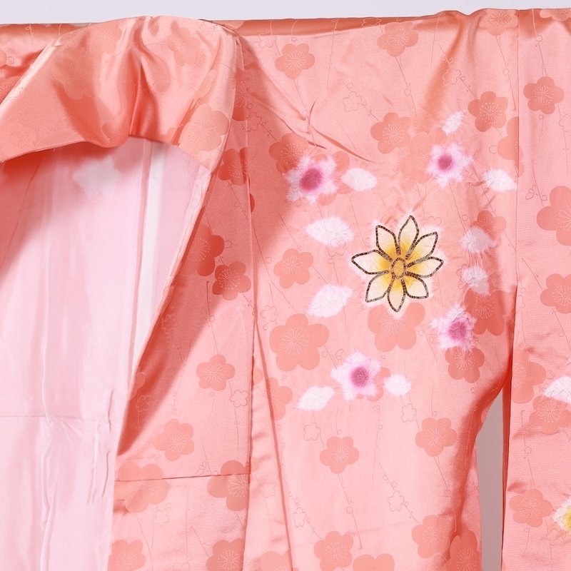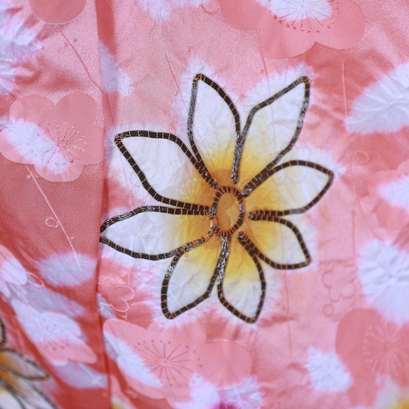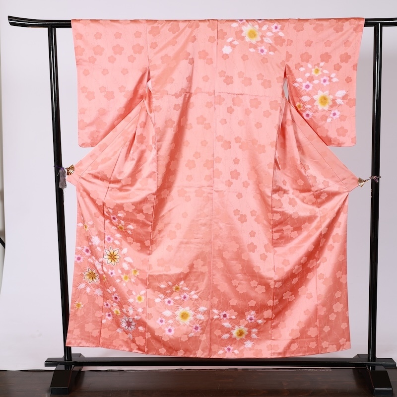 桜の地紋通しに帽子絞りで花が入った可愛いお品になります。