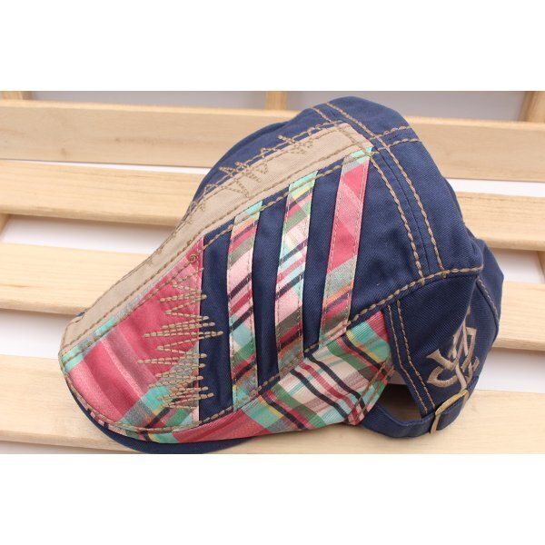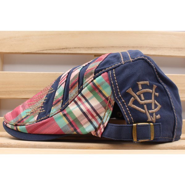【状態】新品 【素材】無地生地 綿100% チェック柄 ポリエステル100% 【サイズ】 頭周り:約56~59㎝ サイズ サイドのベルトでサイズ調節可能 高さ:約11㎝ ツバ:約6.5cm 【色】ネイビー系 【包装】OPP袋 |