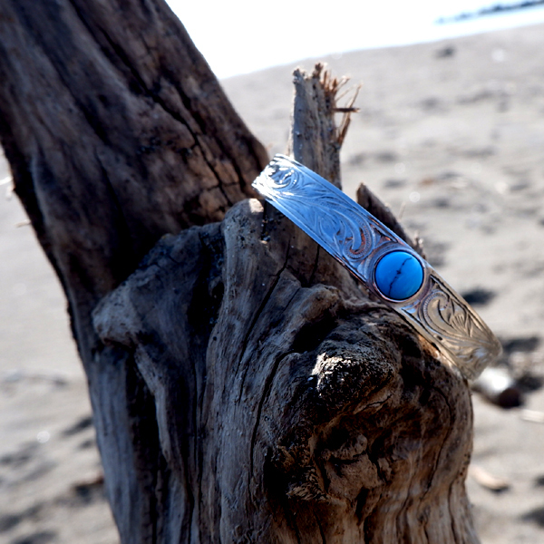 ハワイアンジュエリー バングル ターコイズ ブレスレット プルメリア サージカル ステンレス インスタ