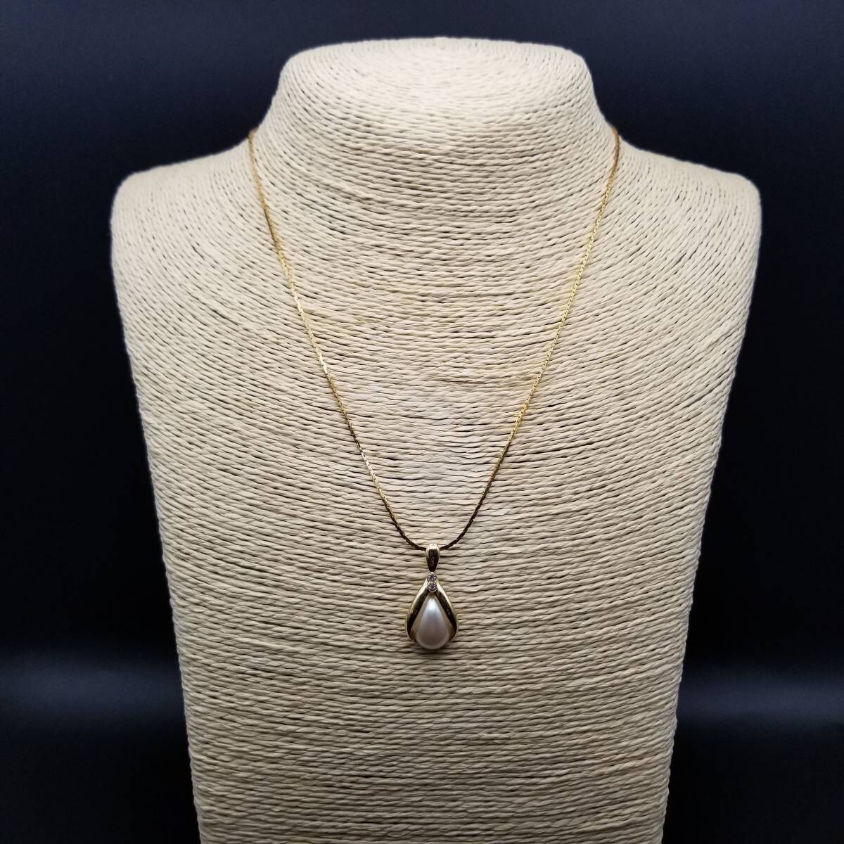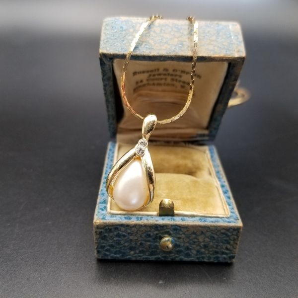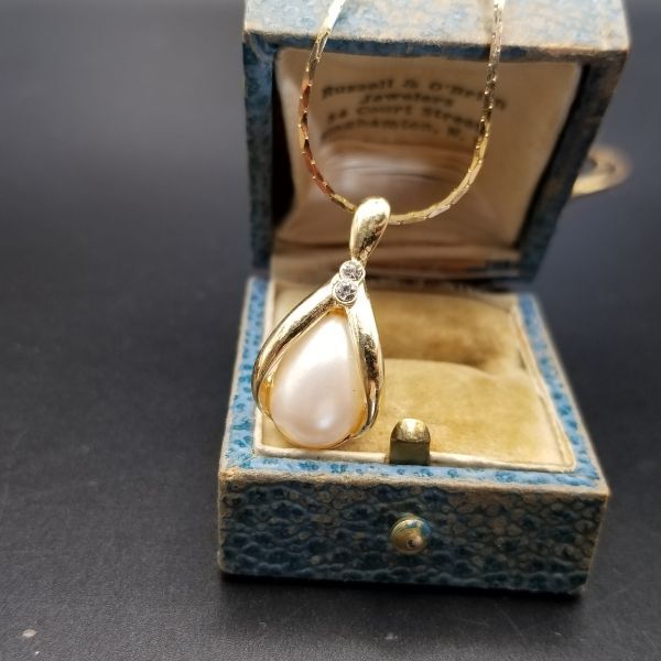 AVON ペアシェイプ ドロップチャーム ヴィンテージ ペンダント ネックレス クラシックエレガント パール調 コスチュームジュエリー YDS8