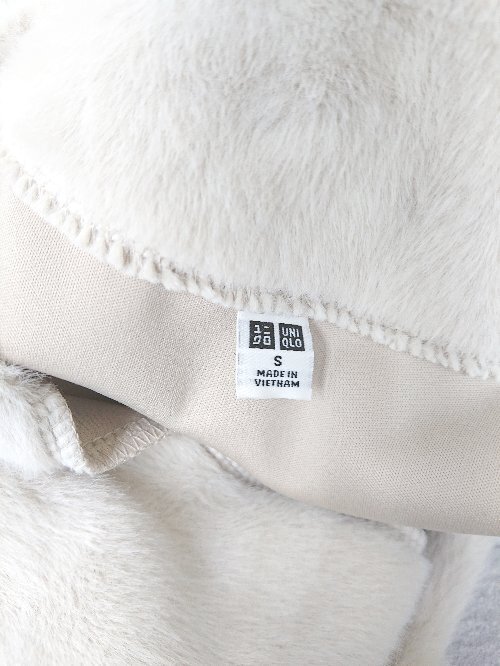 ◇ UNIQLO ユニクロ フェイクファー ノーカラー キレイめ 長袖 ジャケット サイズS ライトベージュ系 レディース P
