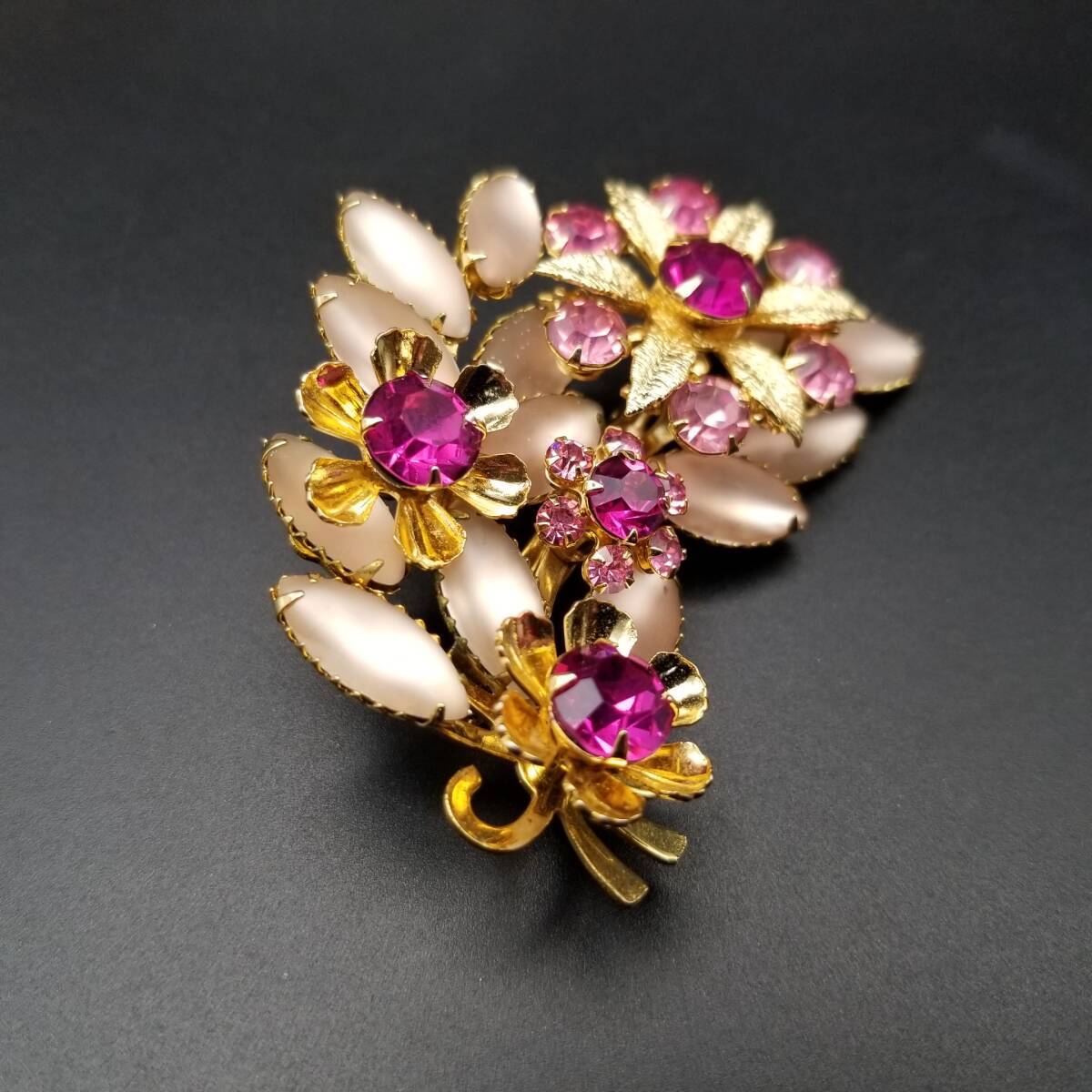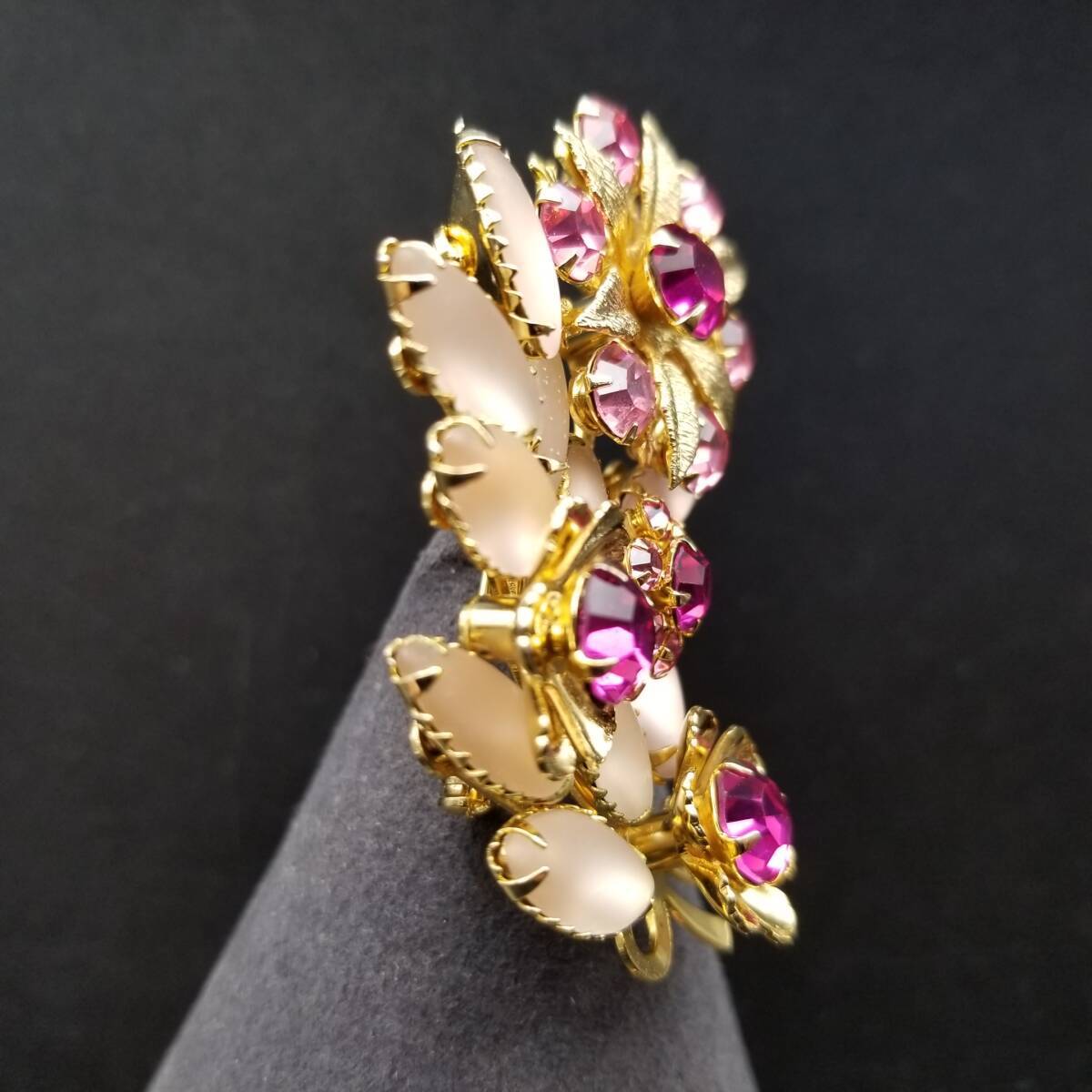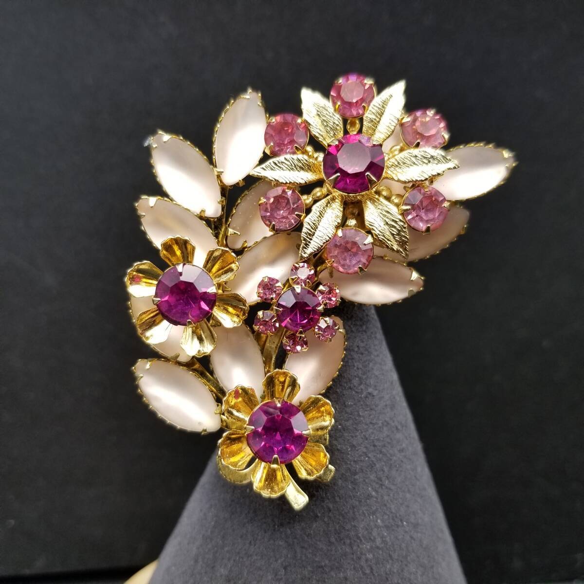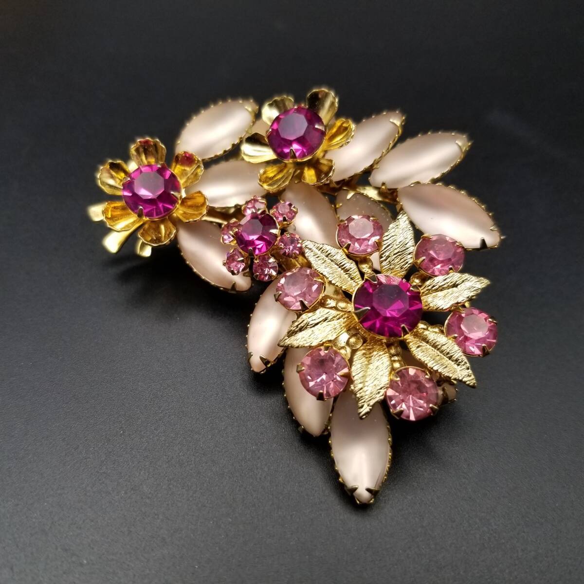 60'70's Judy Lee ピンクのお花 フラワーモチーフ マーキスカット カボション ヴィンテージ ブローチ レトロゴージャス 存在感 Y15-O