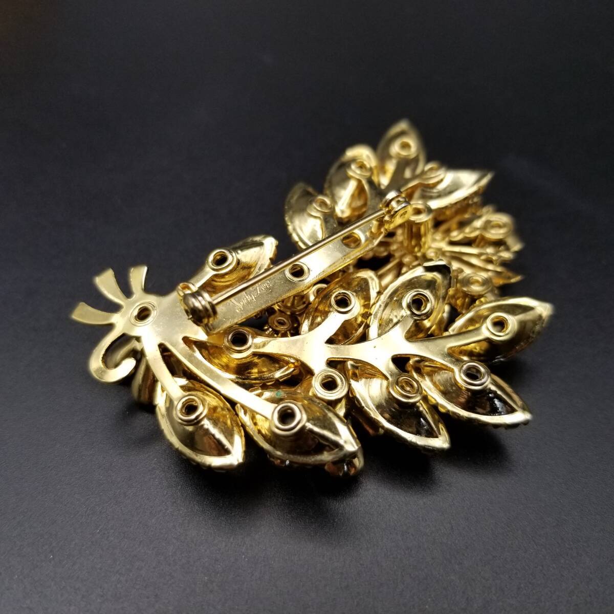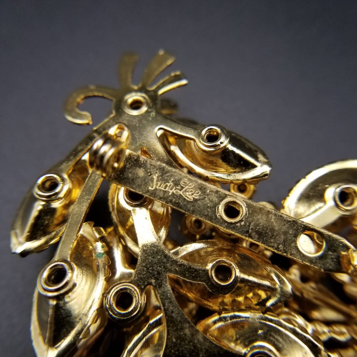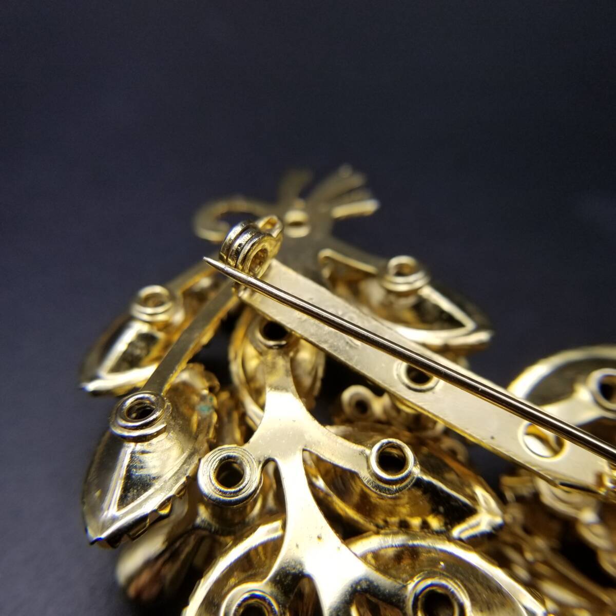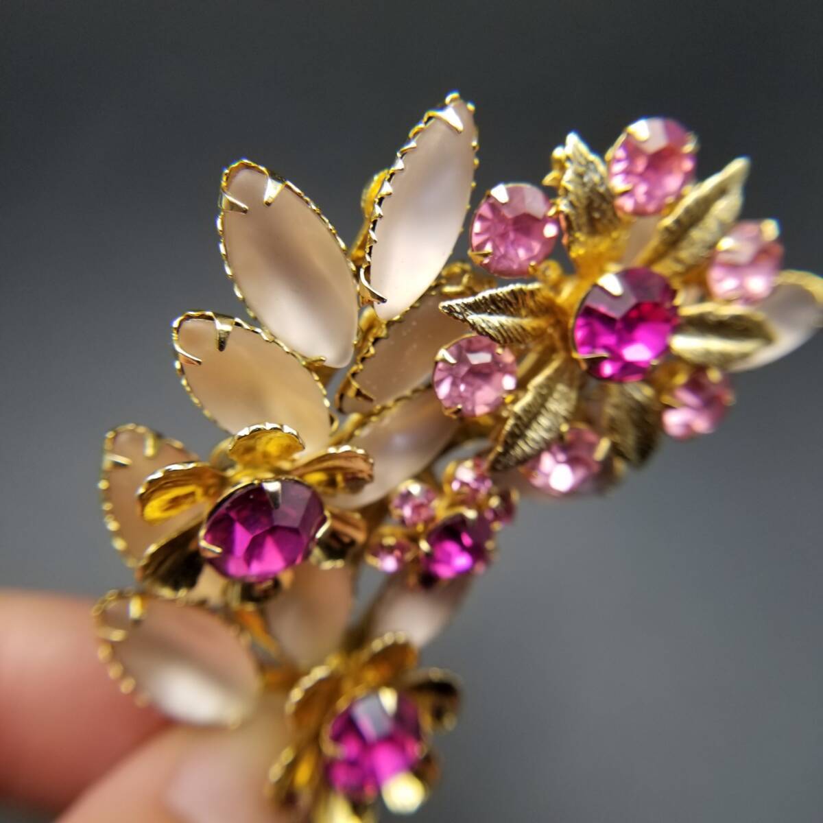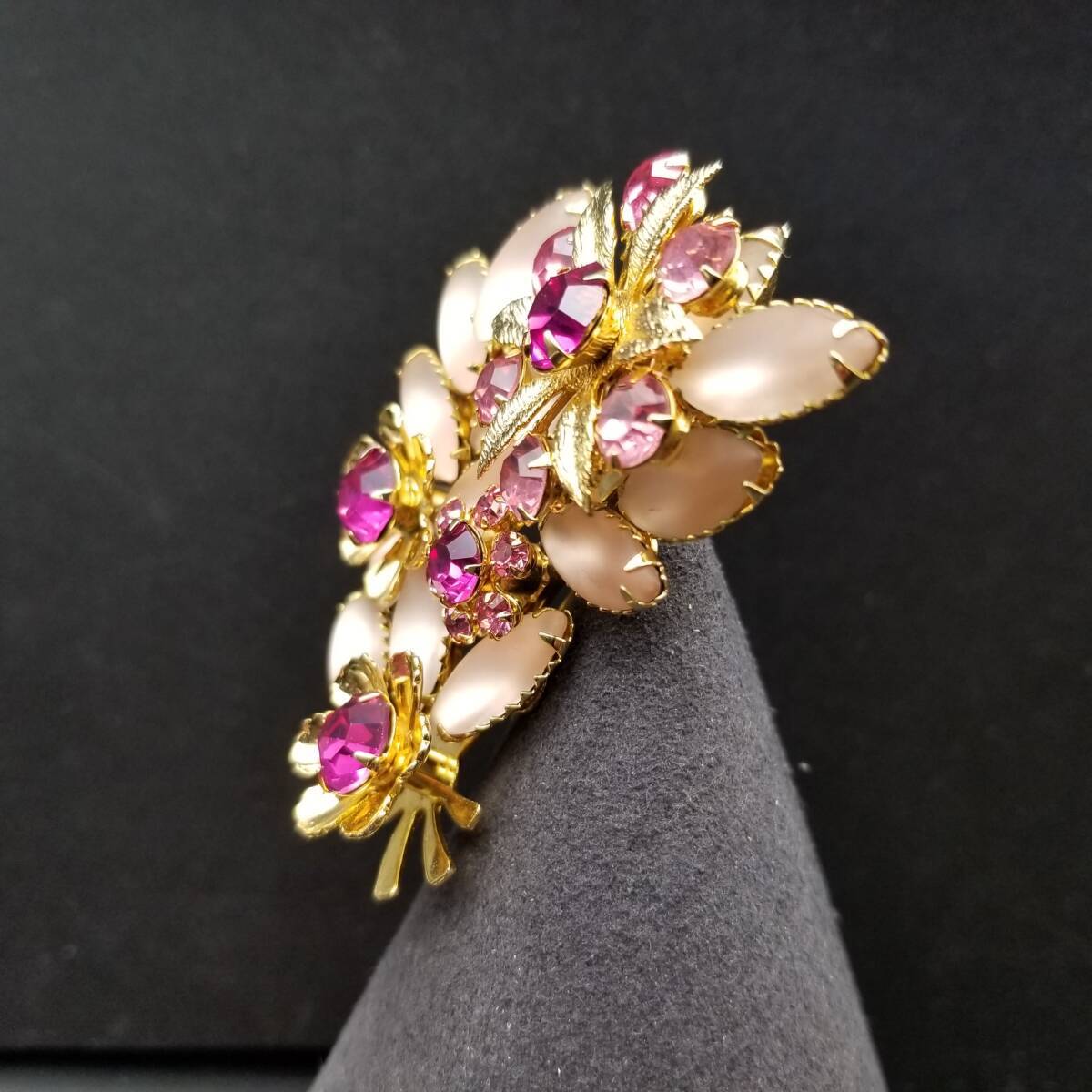60'70's Judy Lee ピンクのお花 フラワーモチーフ マーキスカット カボション ヴィンテージ ブローチ レトロゴージャス 存在感 Y15-O