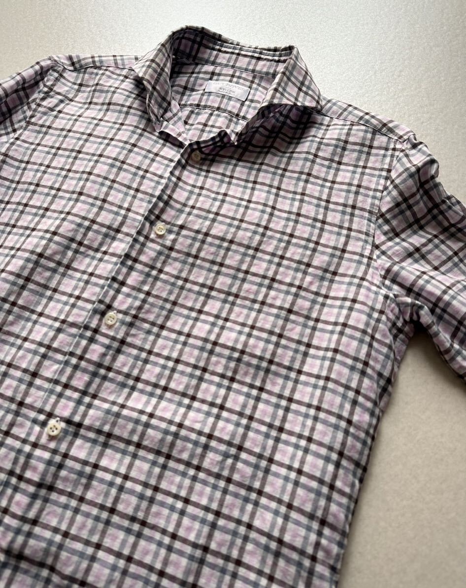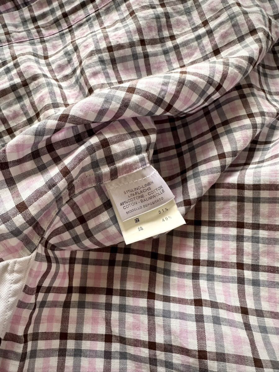 MADE IN ITALY “ GUY ROVER × SHIPS ” COTTON / LINEN PLAID SHIRT ORIGINAL 。