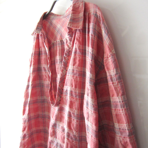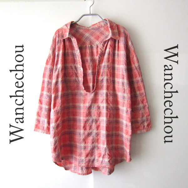 美品 WANCHECHOU/ワンチャウ★ チェック柄 スキッパーシャツ