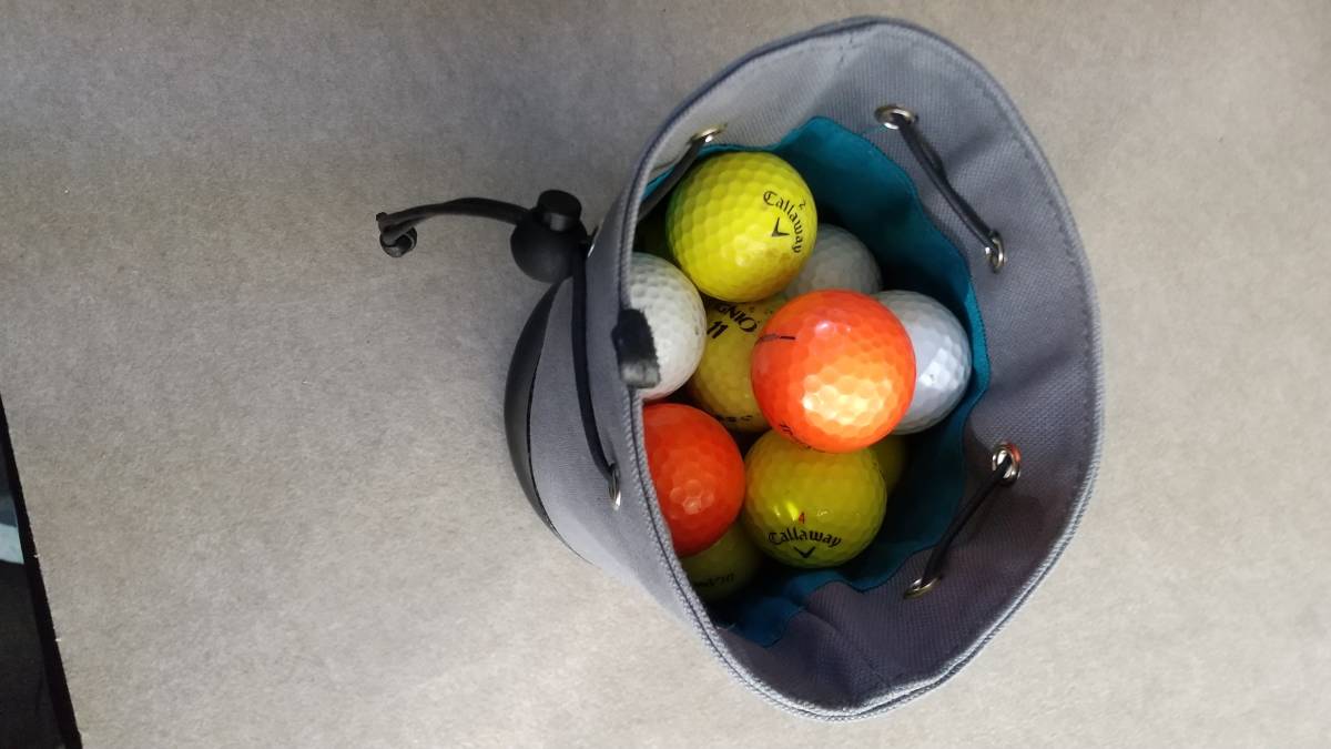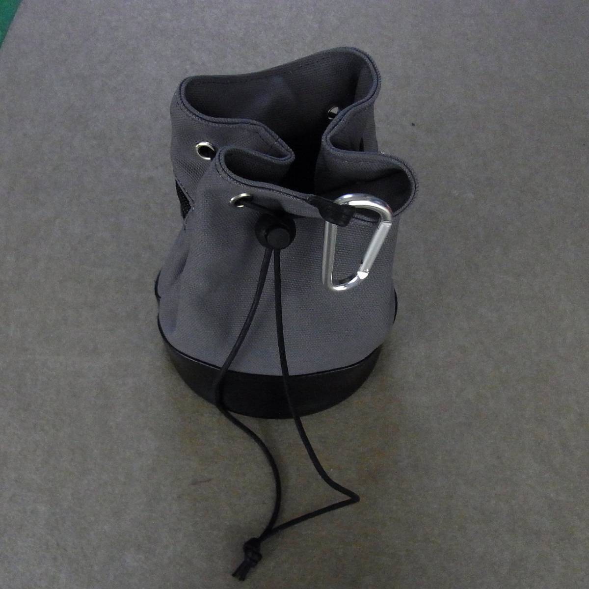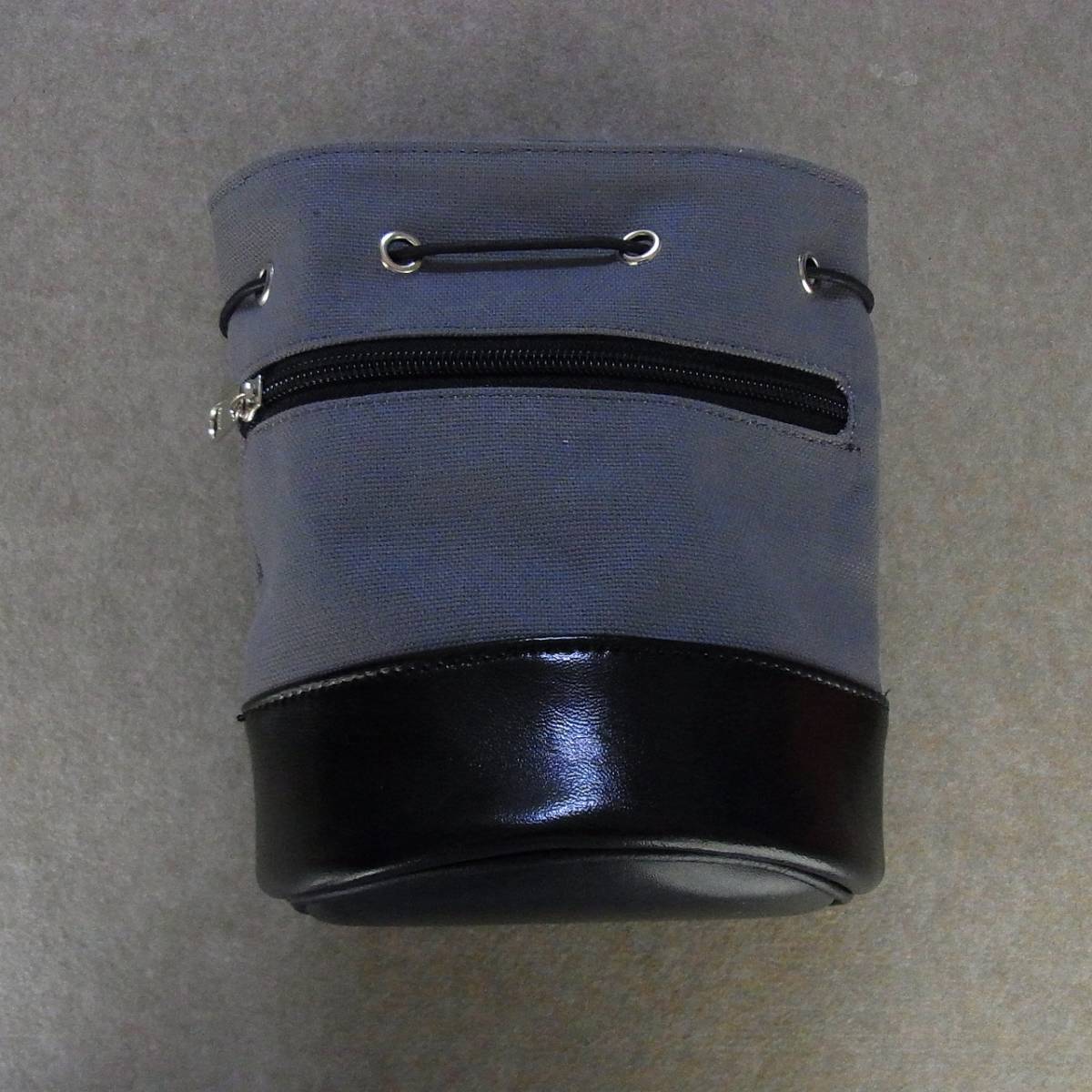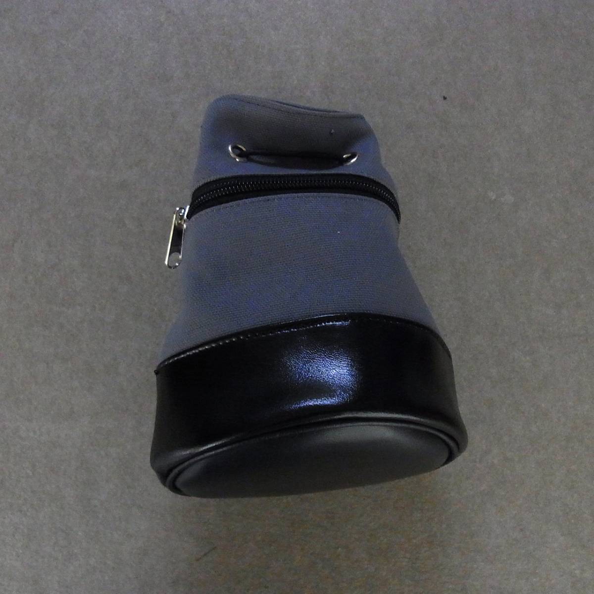 ポーチが楽しい。カラーがす素敵な帆布がグレーカラー 。ファスナーポケットを付けました。オリジナルで お洒落な2役 ボール入れとして重宝します。