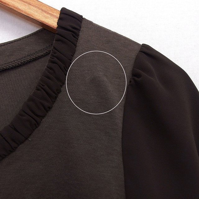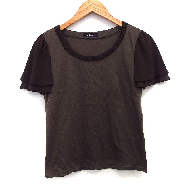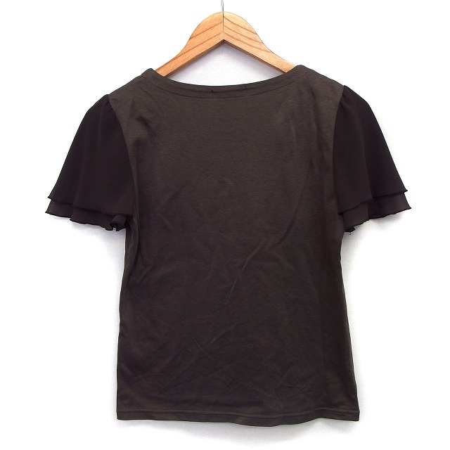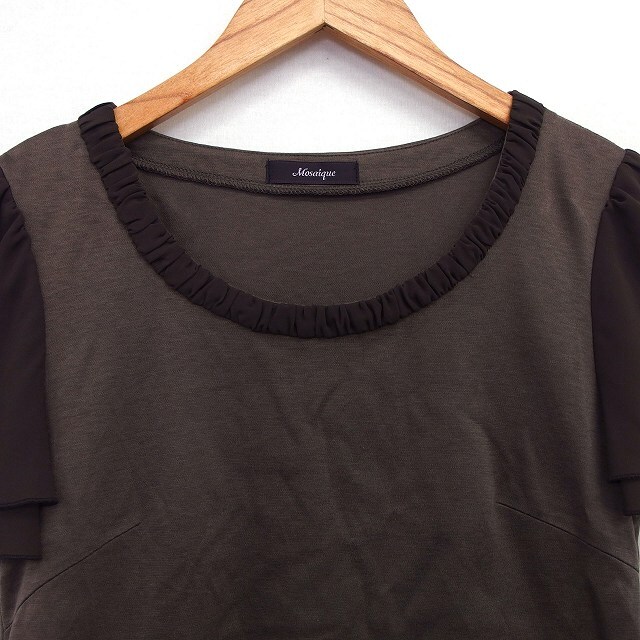 モザイク MOSAIQUE カットソー Tシャツ 切替シフォン 無地 シンプル 半袖 丸首 綿混 L グレーブラウン 茶 /HT12 レディース