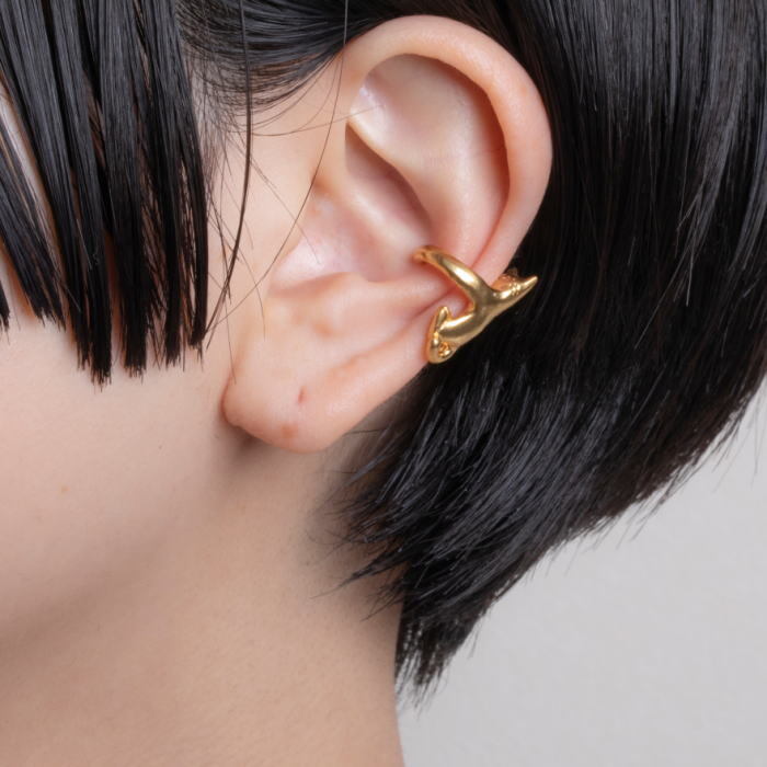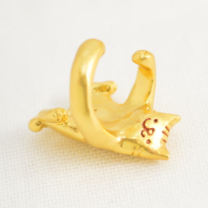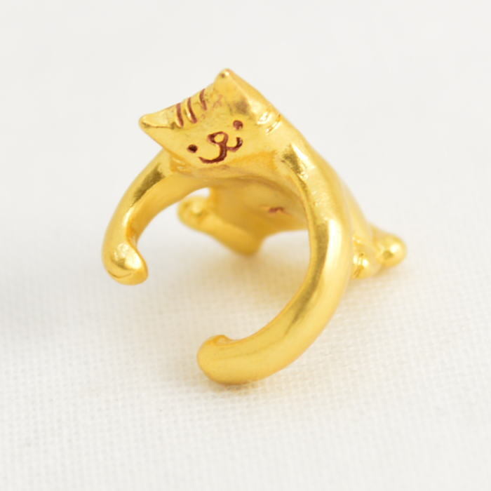 何か気になるものを見つけたようにチラ……っと耳元から様子を伺ってくる猫がかわいいイヤーカフ。 背中の模様や着用すると隠れてしまうおへそまで、どこから見てもかわいいアイテムです。