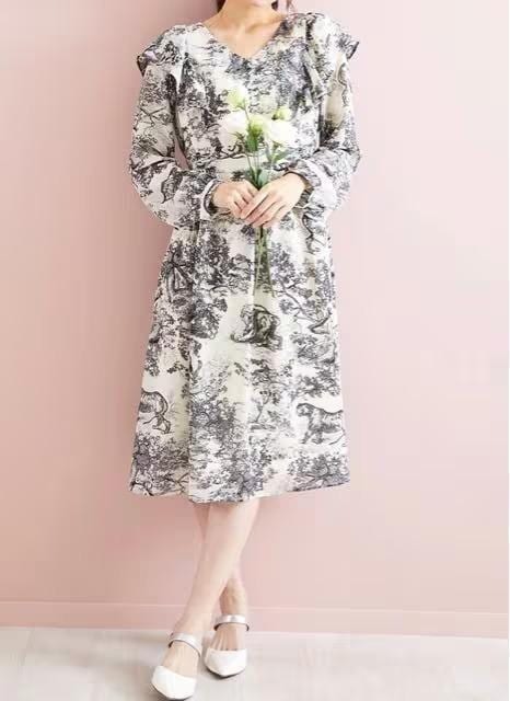 新品☆8L♪モノトーン系アニマル柄フェミニンお出かけワンピース♪☆☆z159