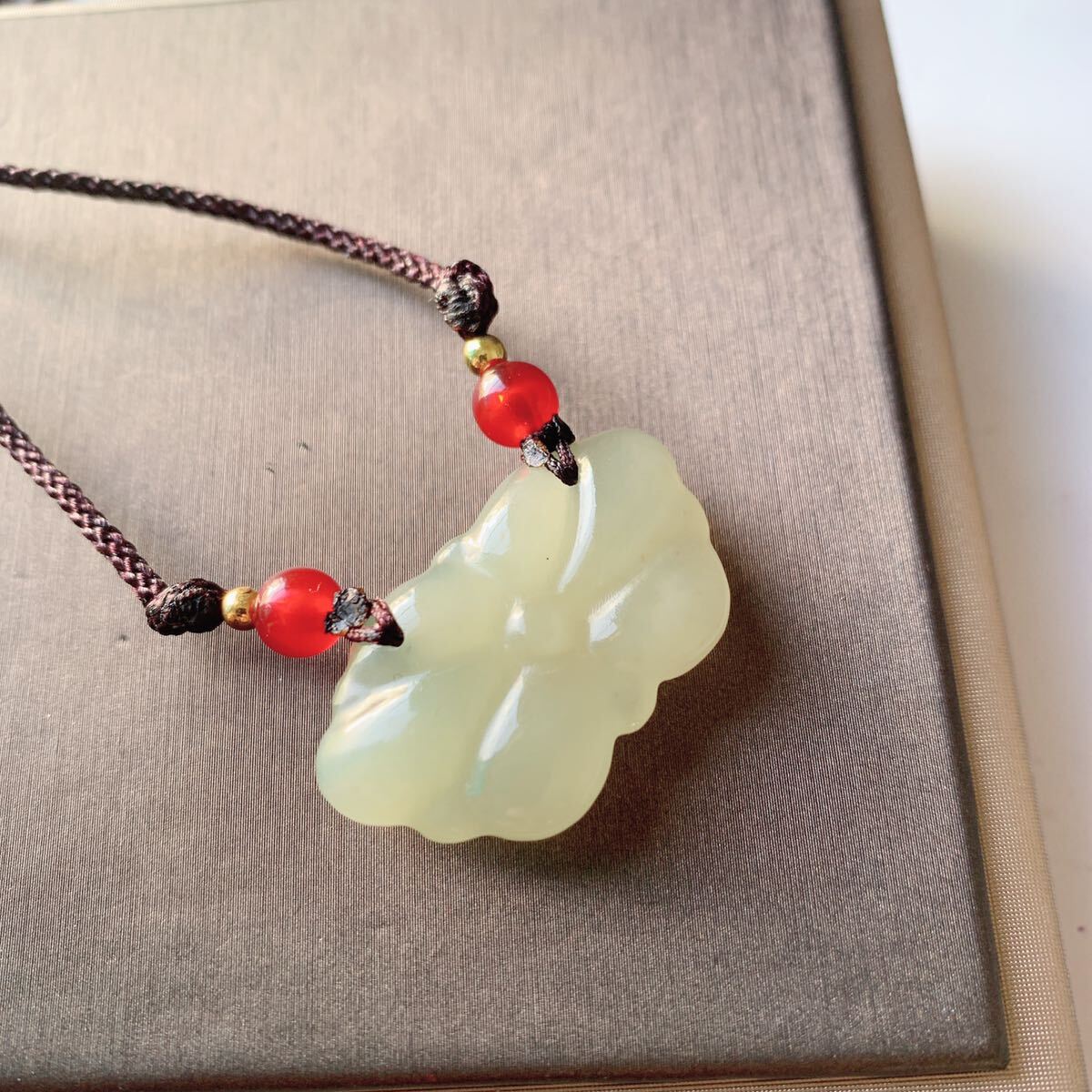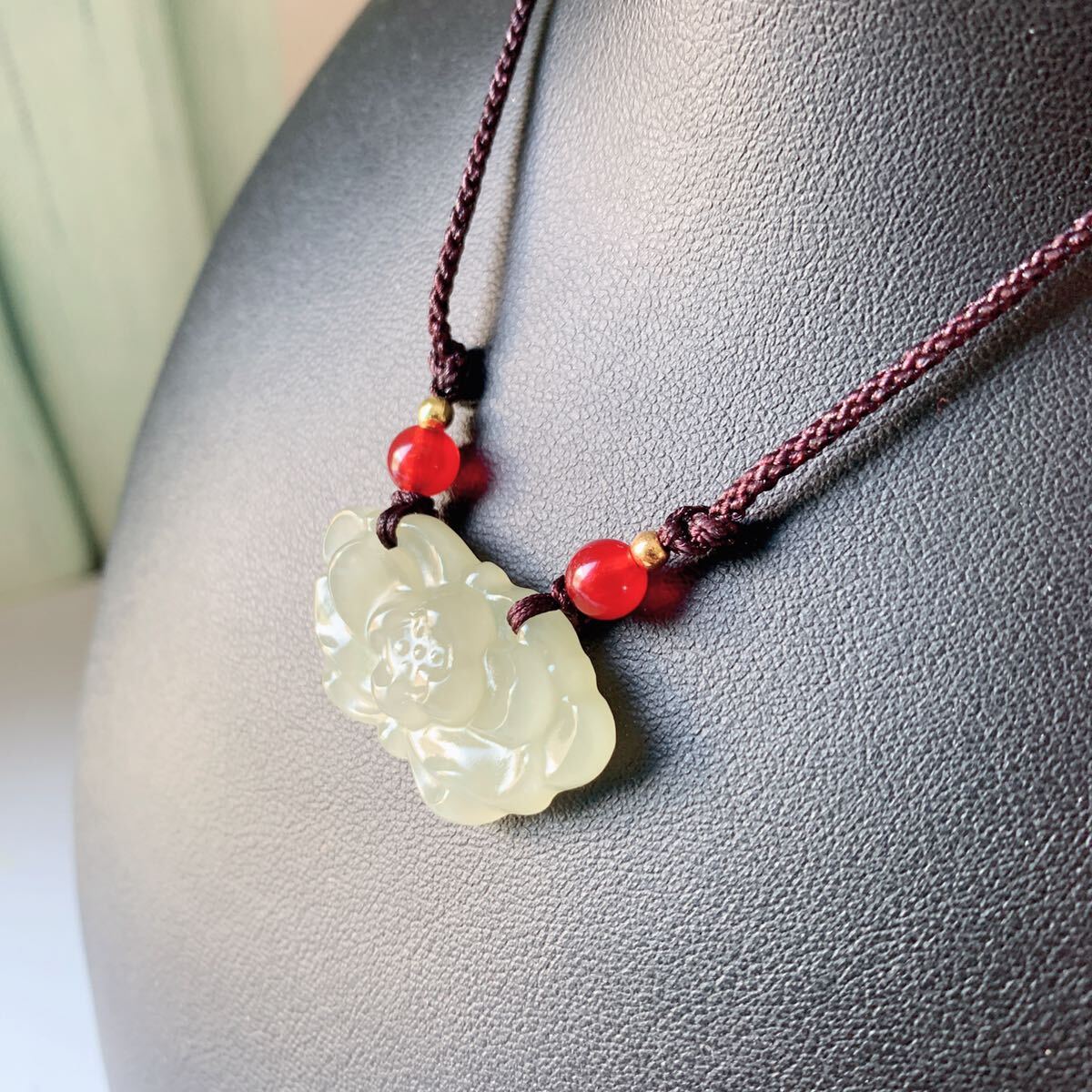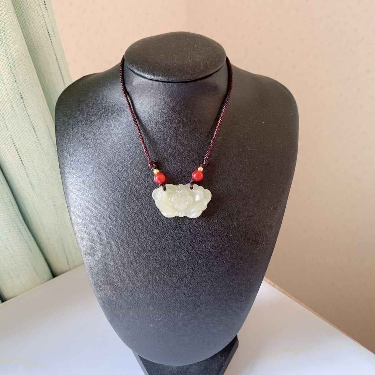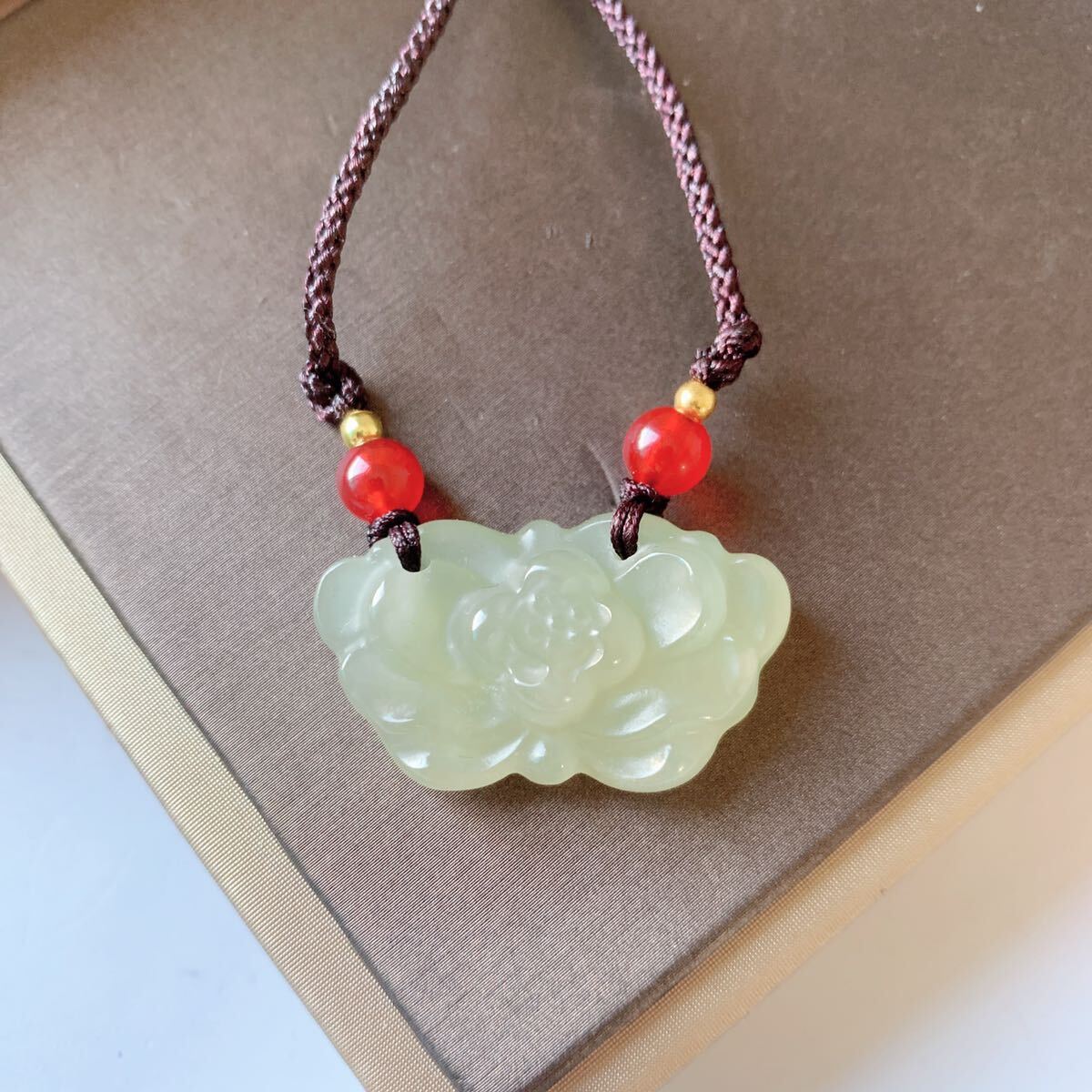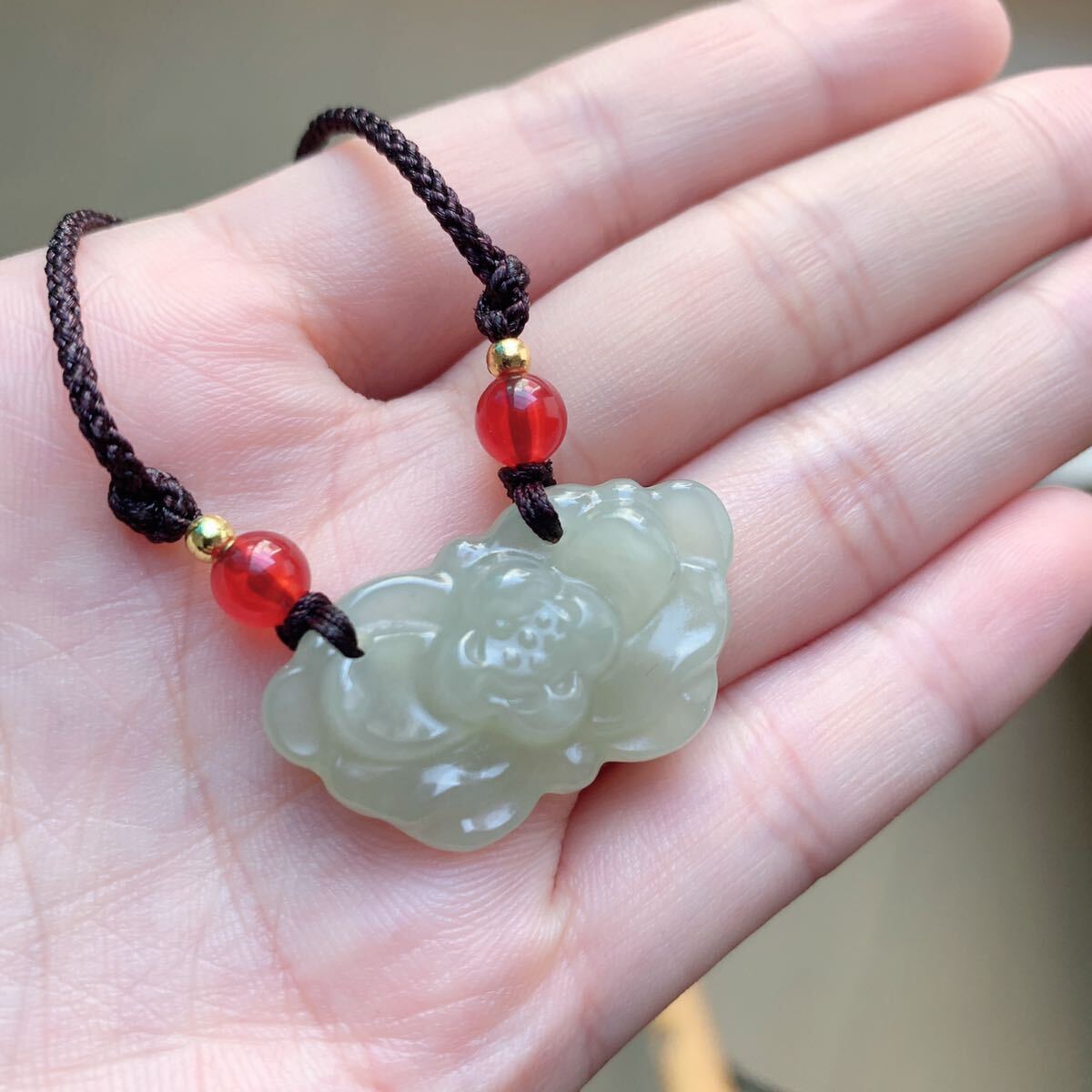 ◇和田玉◇翡翠・ヒスイ◇ネックレスペンダント◇花 彫刻◇天然石◇パワーストーン◇巾着袋付き◇プレゼントに 026P50502