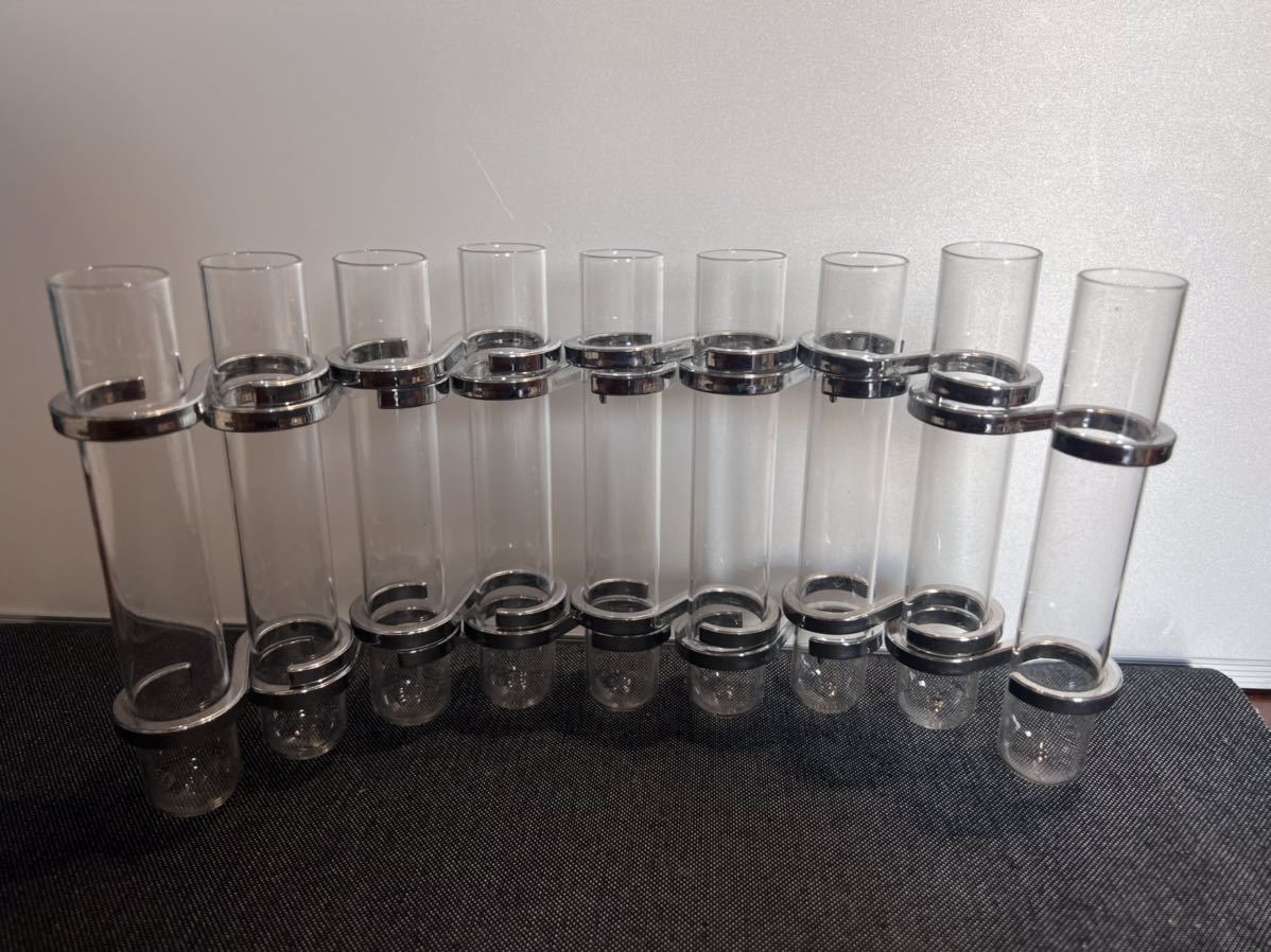 商品説明 ◆試験管フラワーベース 9連◆g-971 サイズ高さ15センチ×直径2.5センチ 重さ339g 未使用ですが、経年経過につき、汚れ等ございます。 試験官9本が連なったガラス製の花器は連結部が動かせるので、様々な形に変形してお花を飾って頂けます。 テーブルセンターや玄関、狭いスペースにもOKなので、飾る場所を選ばず、季節のお花を気軽にお楽しみ頂けます。 店頭に並んでいるような完璧を求められる方の入札はご遠慮ください。 万が一真作でない際には返品を受けつけます。 神経質な方、細かい指定をされる方は御遠慮くださいませ^_^ 画像のカラー、濃淡などはパソコンにより現物と違う場合がございます。 思っていた色ではなかったなどの場合は返品は受けられません。こちらの手違い等の場合は返品を受けつけますので、遠慮なくご連絡をくださいませ。 他にも多数出品中ですのでよろしかったらのぞいてみてください。 自己紹介欄も併せてご覧ください。 まとめての発送もできますのでお気軽にどうぞ! |