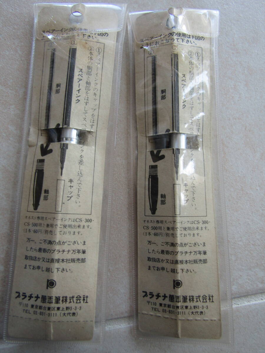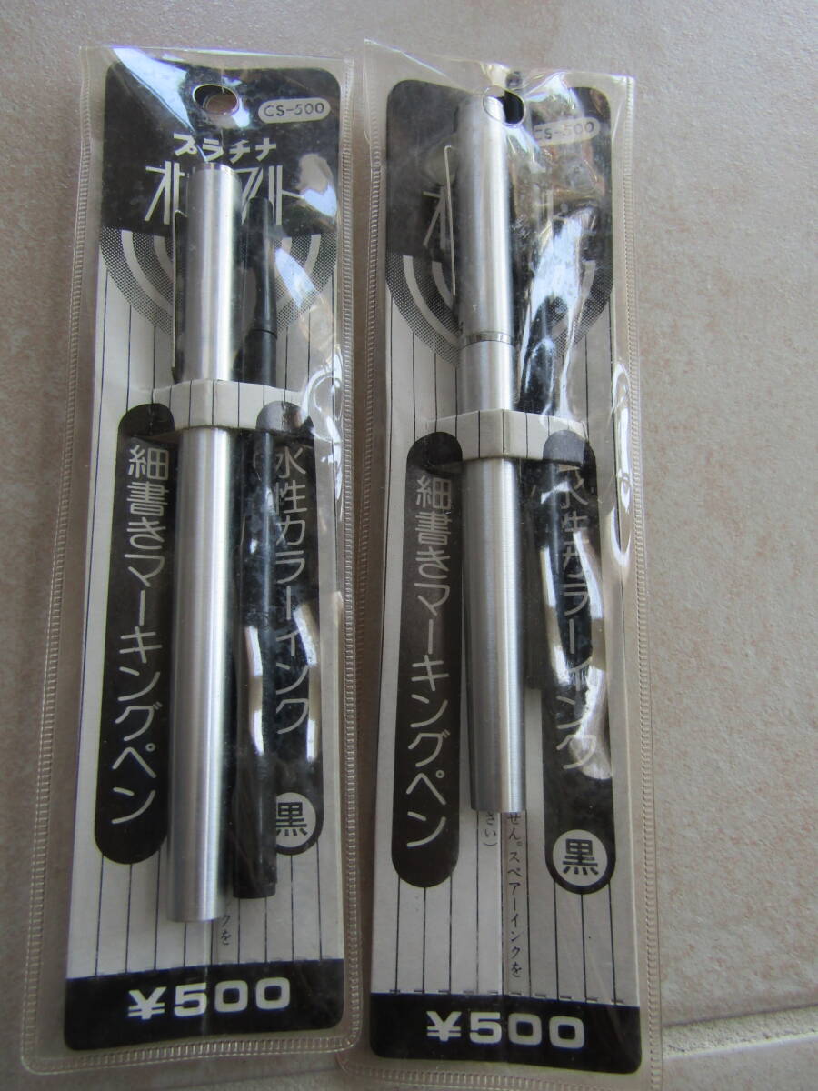 2約40年前のデッドストック品 プラチナ万年筆株式会社 水性カラーインク 細書きマーキングペン 「オネスト」黒2本セット 2405ami