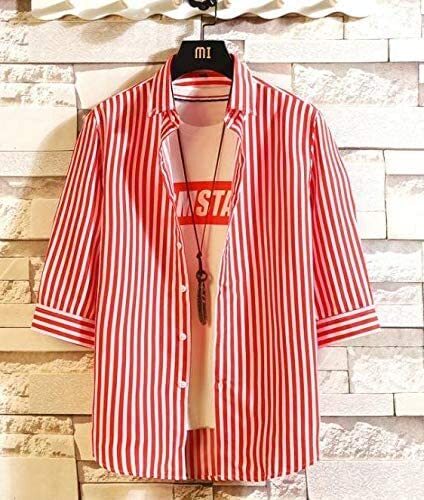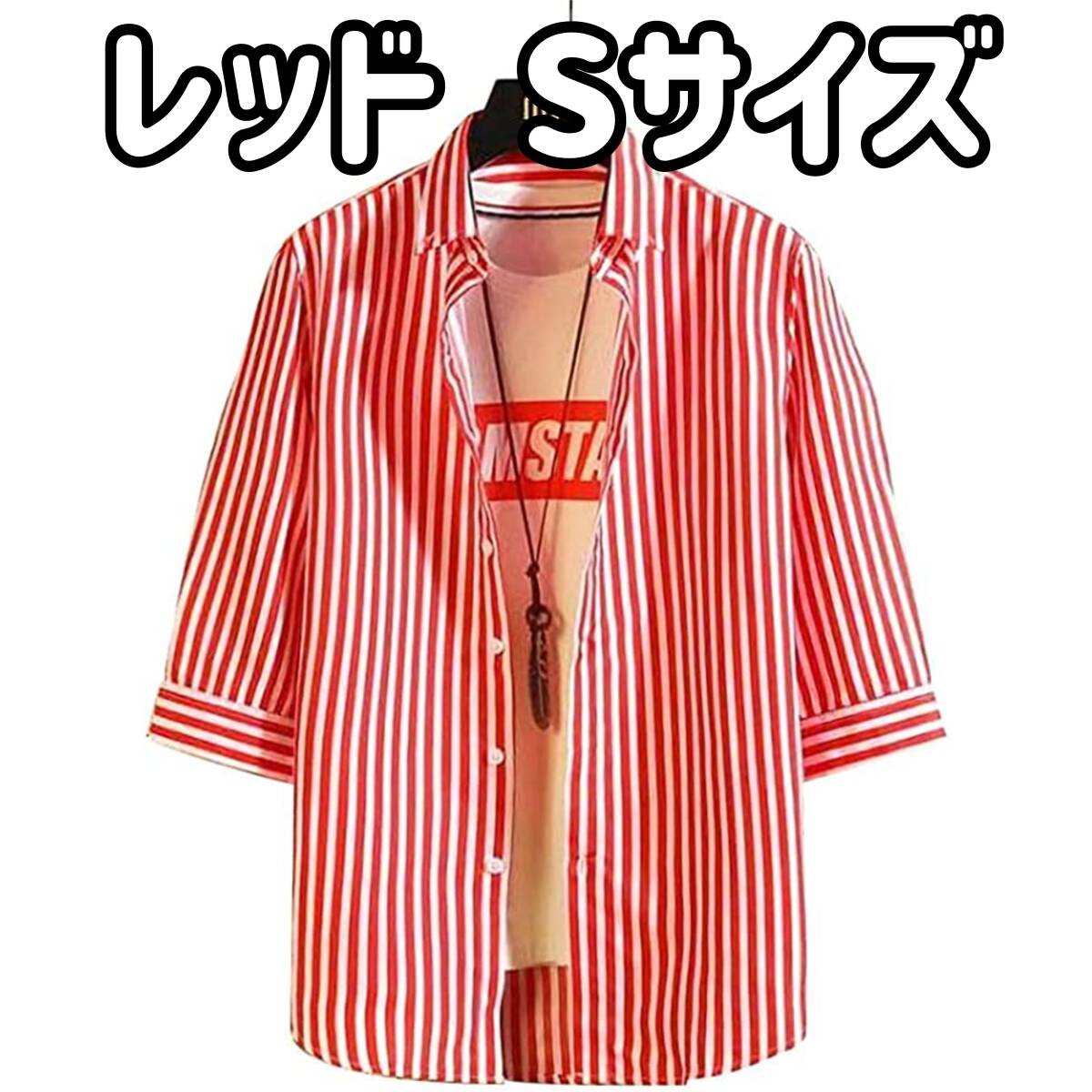 【在庫処分】メンズ 薄手 七分袖 ボタンダウンシャツ カジュアルスタイル おしゃれ 着心地抜群 ブラウス レッド Sサイズ R01
