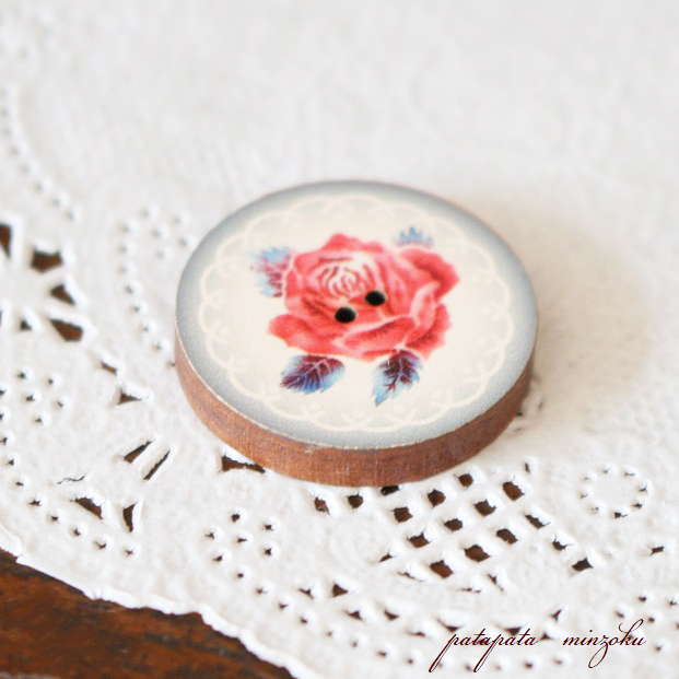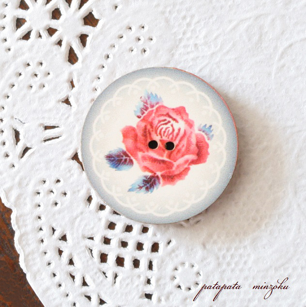 フラワーブルー フランス 製 木製ボタン アトリエ ボヌール ドゥ ジュール 小物 手芸 ボタン 雑貨 バラ