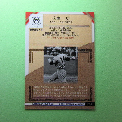 BBM2011 東京六大学野球カード 英雄伝説 #024 広野 功