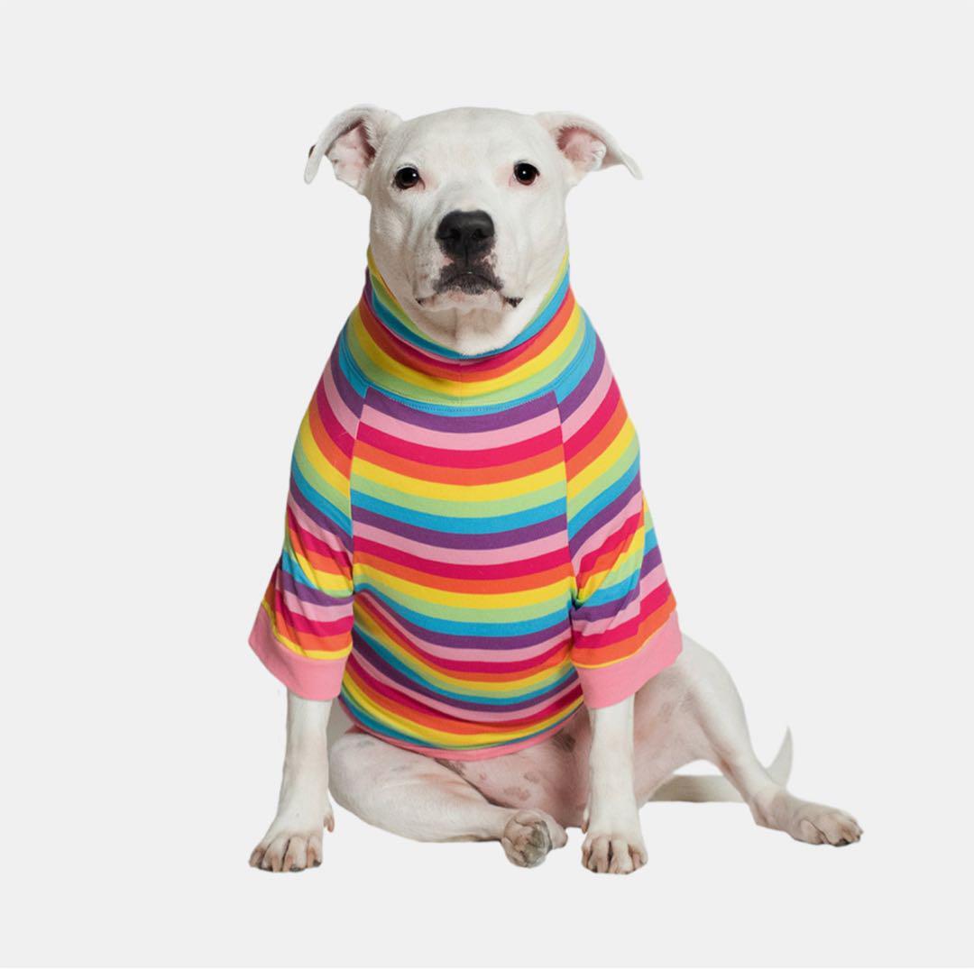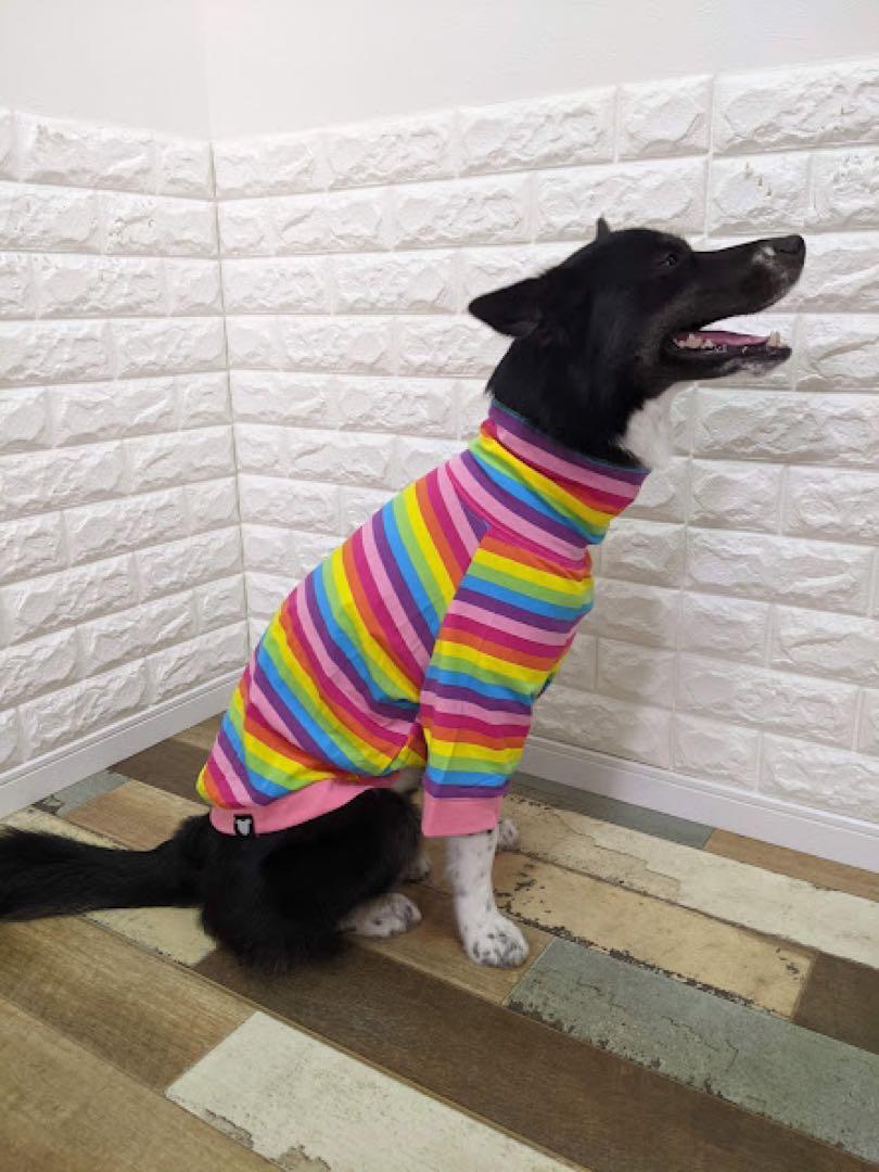 プルオーバー ストライプ シャツ/お腹をしっかりカバー/ビッグドッグ ストリップ シャツ (ミディアム、レインボー)