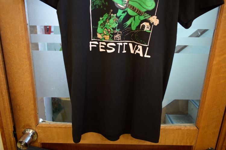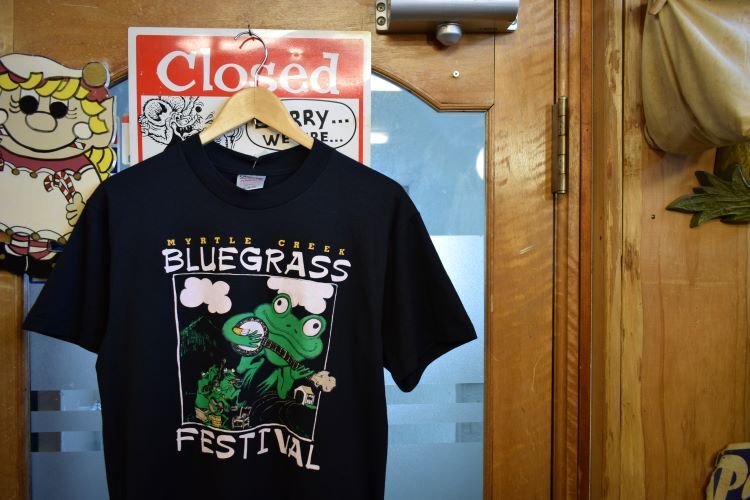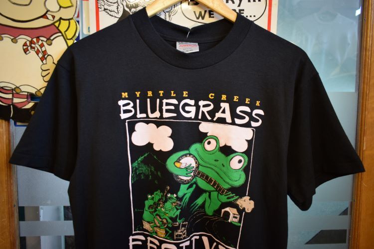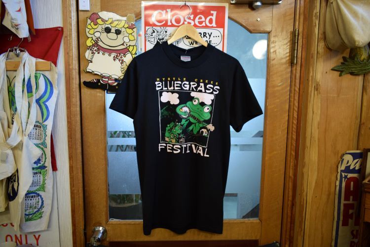 デッドストック品グッドプリント◎90sビンテージONEITAオニータミュージックプリント半袖TシャツMブラックアメカジブルーグラス h23905