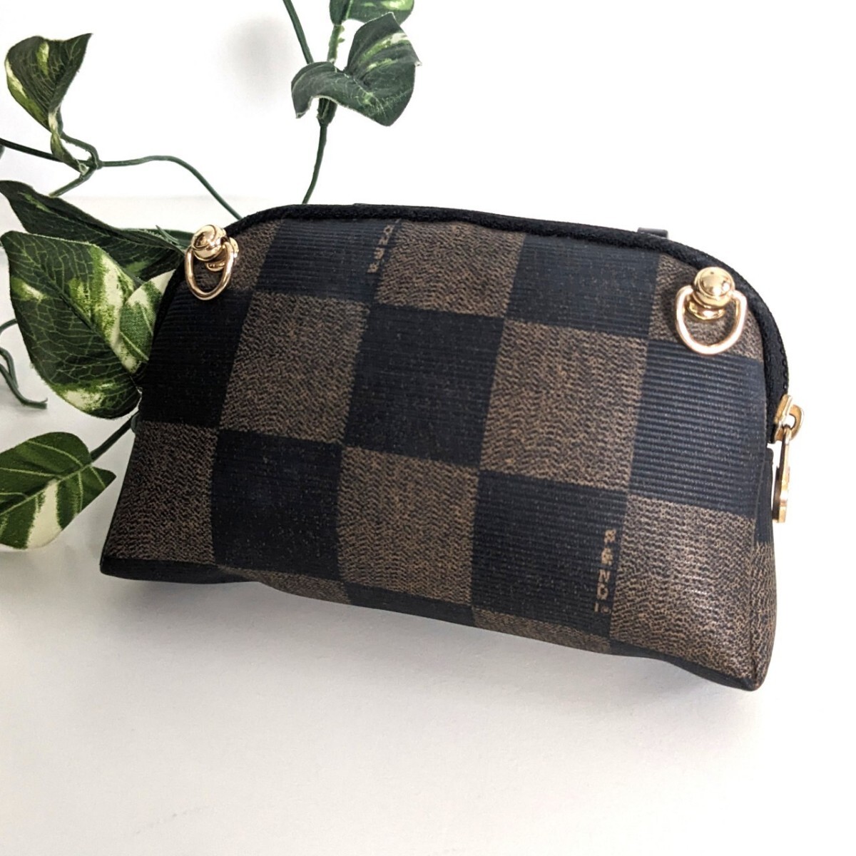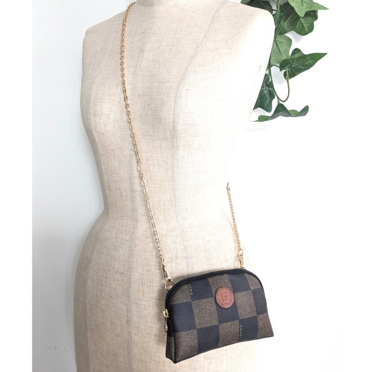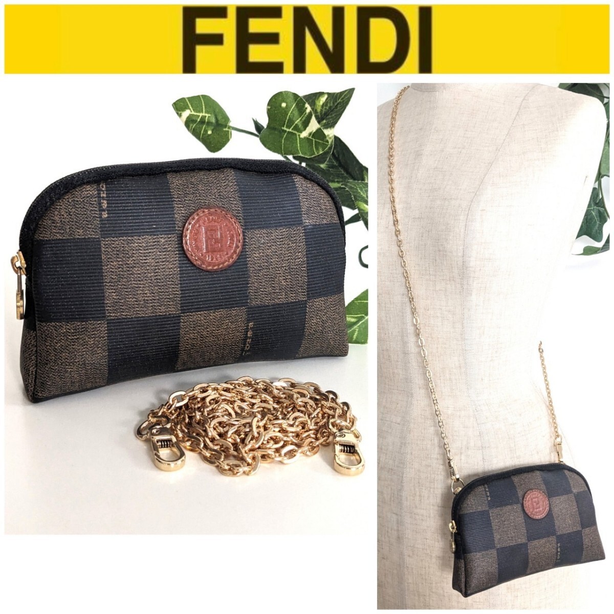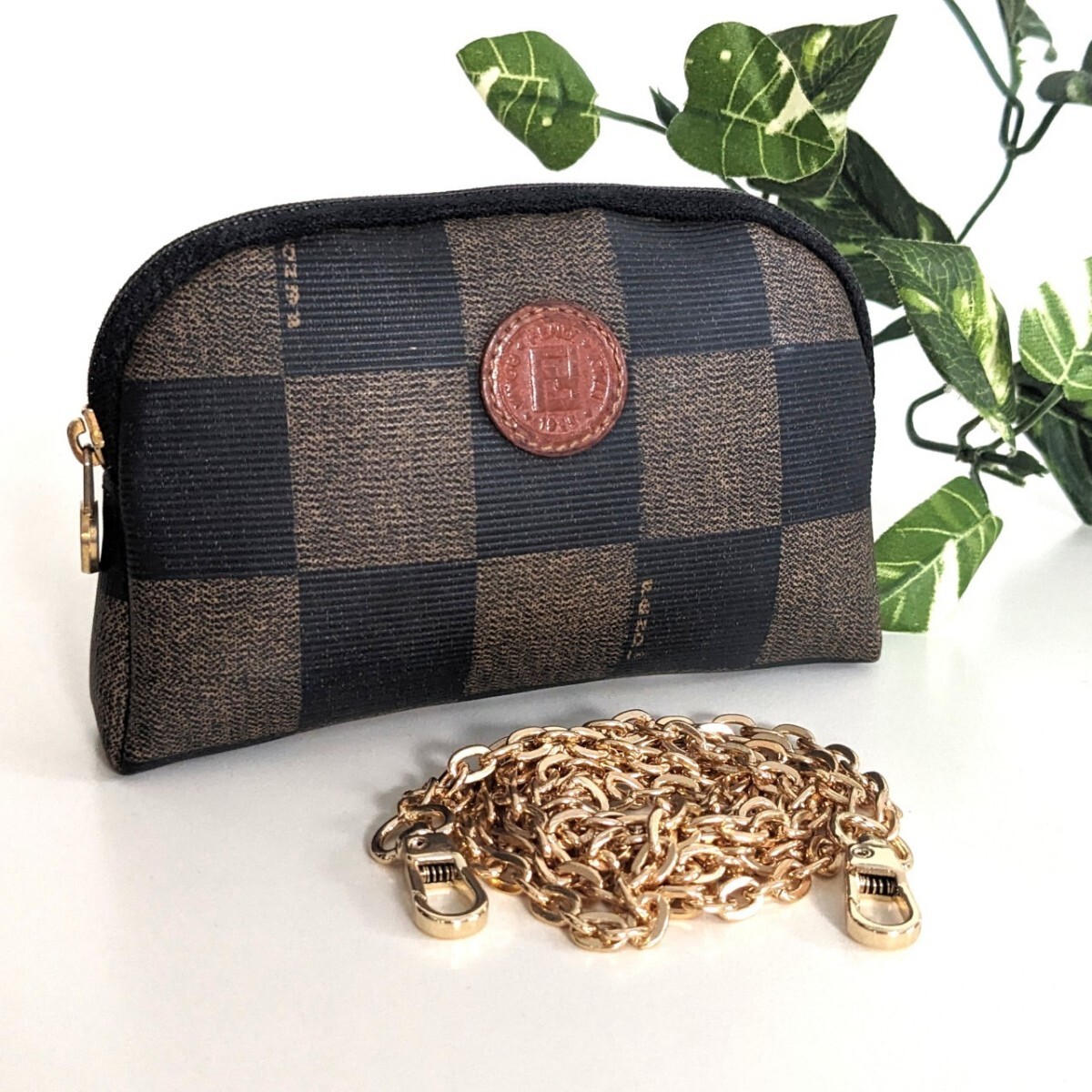 【商品】FENDI オールドフェンディ ペカン チェック 柄 ヴィンテージ 2way ポーチ サコッシュ チェーン 斜め掛け 肩掛け 軽量 ショルダーバッグ クロスボディ ポシェット ボディバッグ 鞄 ミニバッグ 財布 ウォレット アクセサリーポーチ レトロ アンティーク クラシック イタリア製