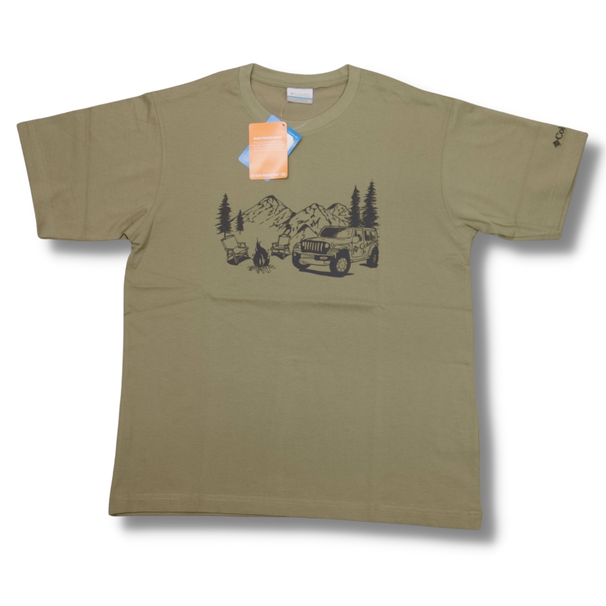 即決☆コロンビア オートキャンプ グラフィック GRN/XLサイズ XL 半袖Tシャツ ネコポス グリーン カーキ UPF UVカット 紫外線対策