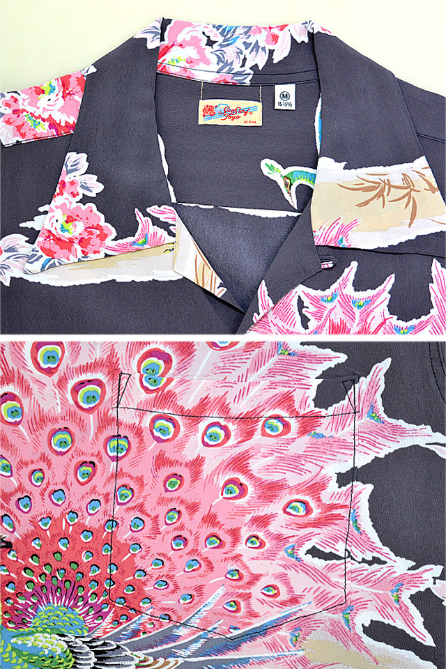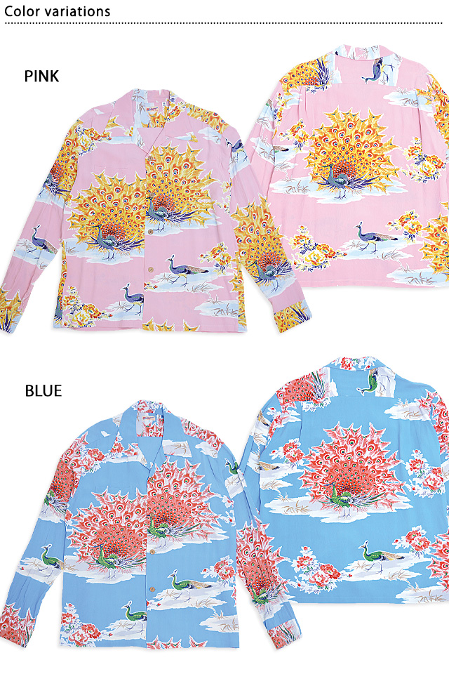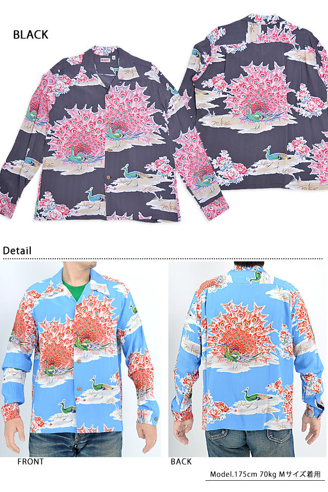 アロハシャツの黄金時代とされる1930~50年代にかけて作られた「ヴィンテージ」と呼ばれる貴重なアロハシャツを再現し、現代に蘇らせているブランド「SUN SURF」から、レーヨン長袖アロハシャツ「PIKAKE」(SS29204)のご紹介です。 ハワイには孔雀に関するものが多く存在しています。 当時、ホノルルの高級紳士服店、ロス・サザーランドのためにカネボウでプリントされた作品です。 アロハシャツは、生産も非常に少なく、レアなアイテムとなっています。 | ||||||||||||||||||||||||||||||