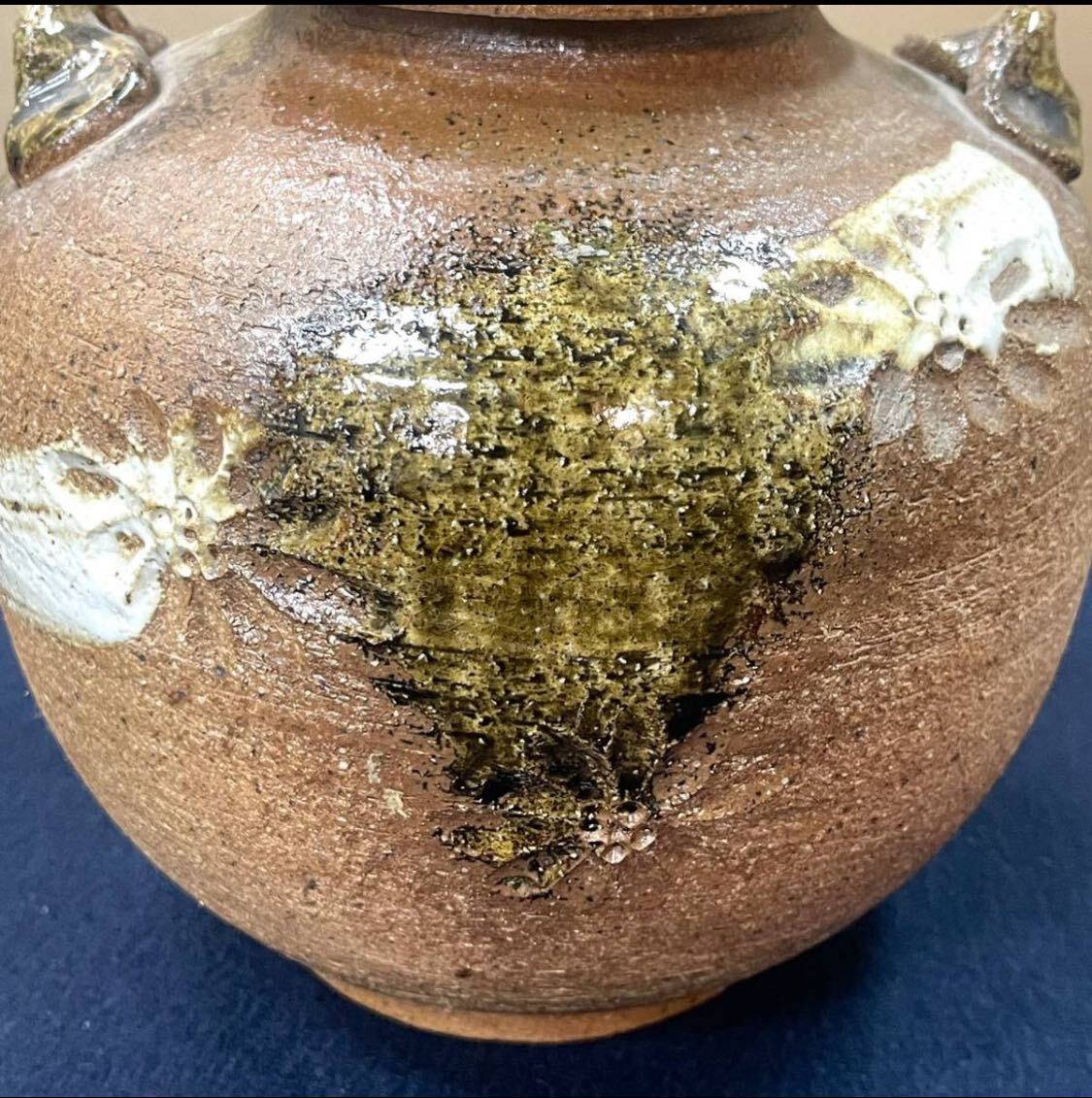 231212コツ★☆骨董/焼物 信楽焼 壺 持ち手付き サイズ:直径180×高さ190mm(実寸)